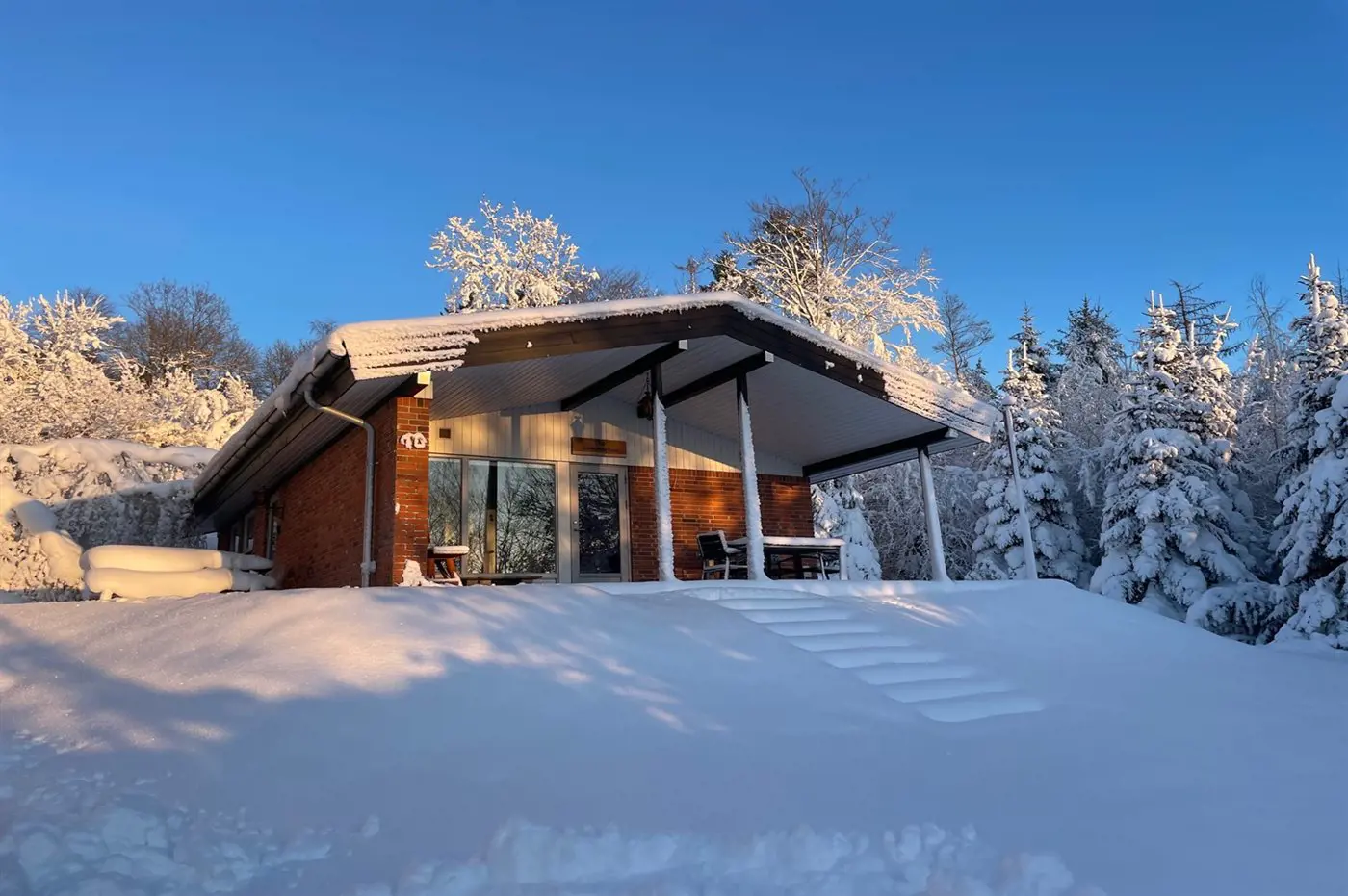 Die Ferienunterkunft liegt auf einem 2025 m² großen Naturgrundstück. Zur Unterkunft gehören ein 30 m² großer offener Terrassenbereich, eine 12 m² große überdachte Terrasse und gute Parkmöglichkeiten.