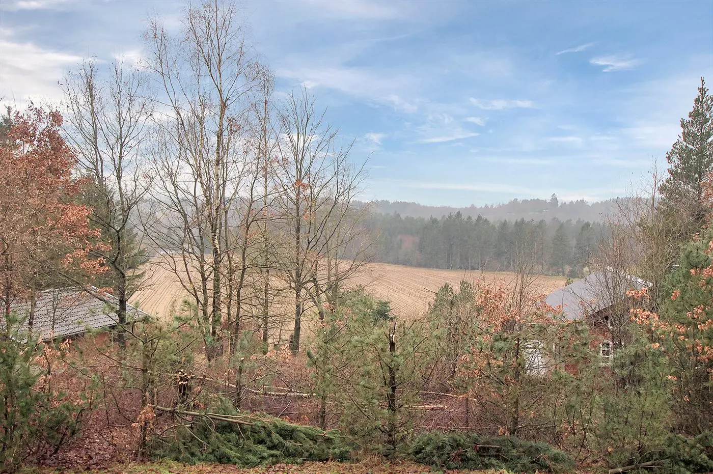 Ferienhaus in erhöhter Lage auf einem hügeligen Hanggrundstück mit einem wunderschönen Ausblick auf die Landschaft.
