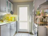 Das Ferienhaus enthält u.a. einen schönen, hellen Küchen-/Wohnbereich mit Ess- und Sitzecke für das Familienleben. Von hier hat man direkten Zugang zu einer teilweise überdachten Terrassenfläche.
