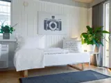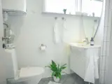 Das Haus verfügt über zwei Zimmer; das erste mit Doppel- und Einzelbett, das zweite mit Einzelbett. Zusätzlich gibt es eine Schlafmöglichkeit für eine Person im Wohnzimmer. Attraktives Bad im Haus.