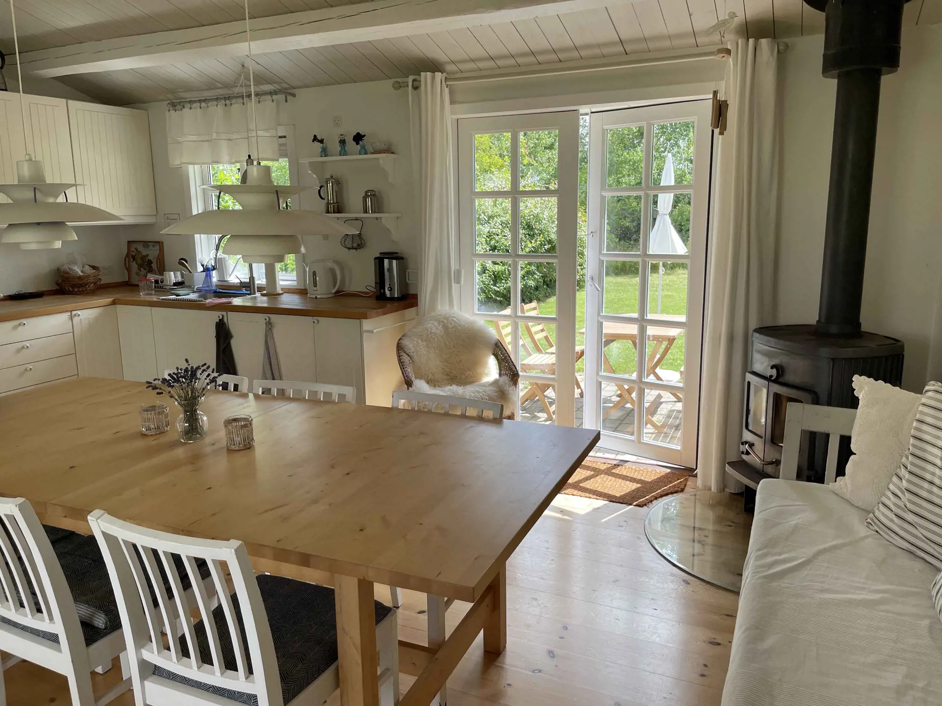 Das Ferienhaus verfügt über einen großen, abgeschiedenen Garten und eine praktische Außenküche, in der Sie Ihre Mahlzeiten im Freien genießen können. Vom Haus aus haben Sie einen schönen Blick auf die offenen Felder, was ein Gefühl von Ruhe und Freiheit vermittelt.