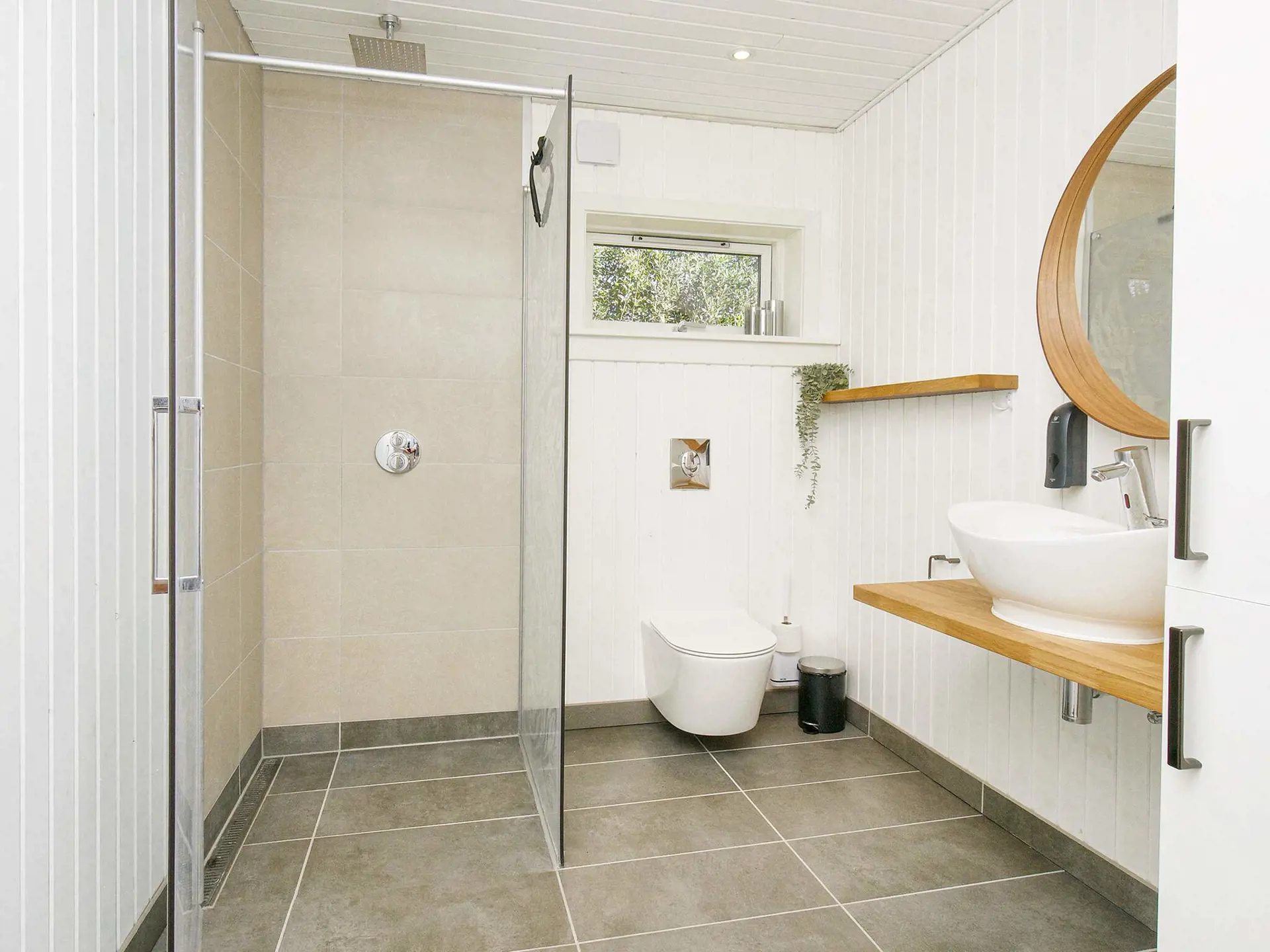 Die voll ausgestattete Küche umfasst einen Ofen, Kühlschrank mit Gefrierfach, Mikrowelle, Induktionskochfeld, Kaffeemaschine und Geschirrspüler, sodass die Gäste problemlos Mahlzeiten zubereiten können. Das Badezimmer ist mit Dusche, WC und Waschbecken ausgestattet und verfügt zudem über eine Waschmaschine für zusätzlichen Komfort.