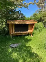 -unter dem Sonnenschirm auf dem Rasen oder der Terrasse. Nutzen Sie den Garten nach Belieben und übernachten Sie gerne im Shelter des Hauses, der Ihnen zur freien Verfügung steht, wenn die Nächte im Haus zu warm werden. Der Frühstückstisch lässt sich bequem unter den Sonnenschirm stellen. Der schöne Badestrand am und um den Campingplatz der Insel ist nicht weit entfernt, wenn es Zeit für ein Bad ist. Freuen Sie sich auf eine Reihe von Abenden mit gegrillten Köstlichkeiten aus lokalen Zutaten auf dem Esstisch.