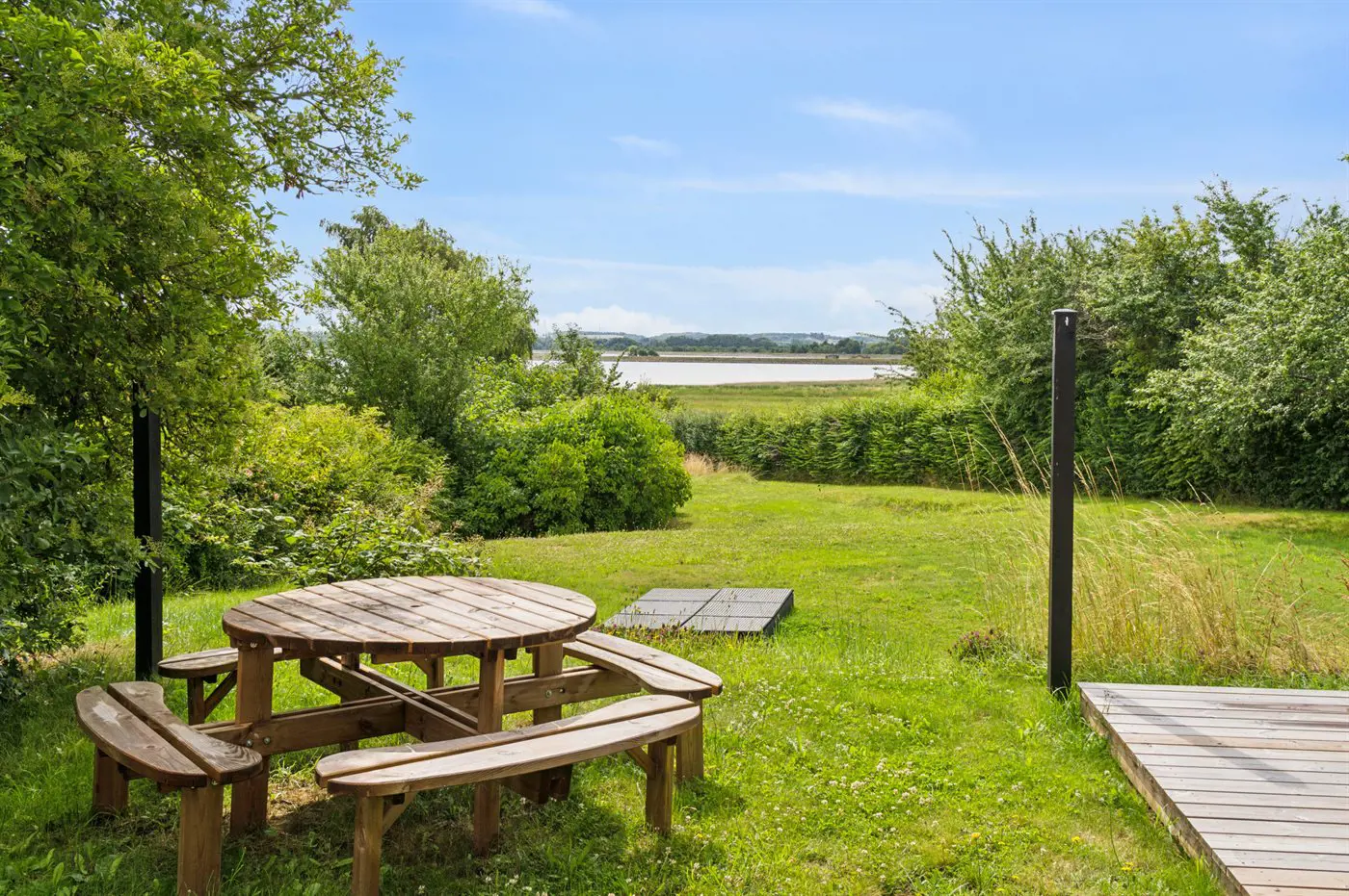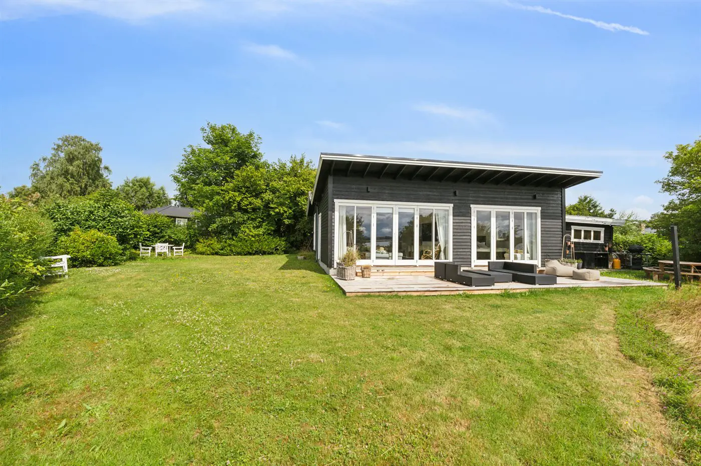 Dieses stilvoll und sommerlich eingerichtete Ferienhaus mit Blick auf den Fjord liegt in einer kleinen und ruhigen Ferienhaussiedlung, nur 175 Meter vom Wasser entfernt. Das Haus präsentiert sich hell und elegant mit viel Tageslicht durch die großen, nach Süden ausgerichteten Fensterpartien. Die großzügige Wohnküche, die offen mit dem Wohnzimmer verbunden ist, bildet den natürlichen Mittelpunkt für gemütliche Stunden mit Freunden und Familie. Von hier und vom Hauptschlafzimmer aus hat man einen schönen Blick auf den Lammefjord und die Halbinsel Tuse Næs.