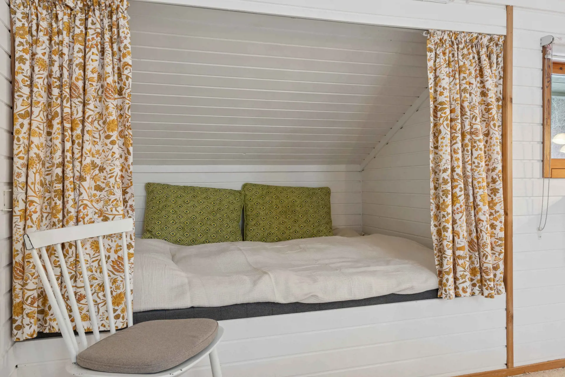 Das Ferienhaus verfügt über ein Schlafzimmer, eine Alkove und insgesamt fünf Schlafplätze und bietet damit Flexibilität für Kinder und Erwachsene. Die Einrichtung ist hell und funktional, sodass man sich auch bei schlechtem Wetter wohlfühlt.