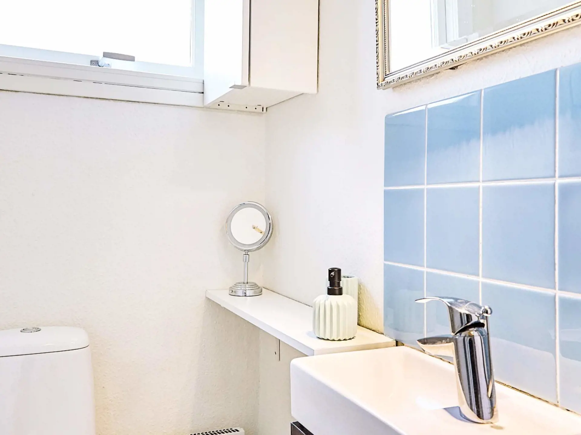 Zur Ausstattung im Wohnbereich gehören auch Fernseher mit Chromecast zum Streamen Ihrer TV-Dienste. Auf dem großen Grundstück steht ein Gartentrampolin (Nutzung nur auf eigenes Risiko) bereit, zudem gibt es eine große Rasenfläche für Ballspiele etc. Das Ferienhaus stellt auch eine teils überdachte Terrassenfläche für sonnige Tage und Mahlzeiten im Freien zur Verfügung.
