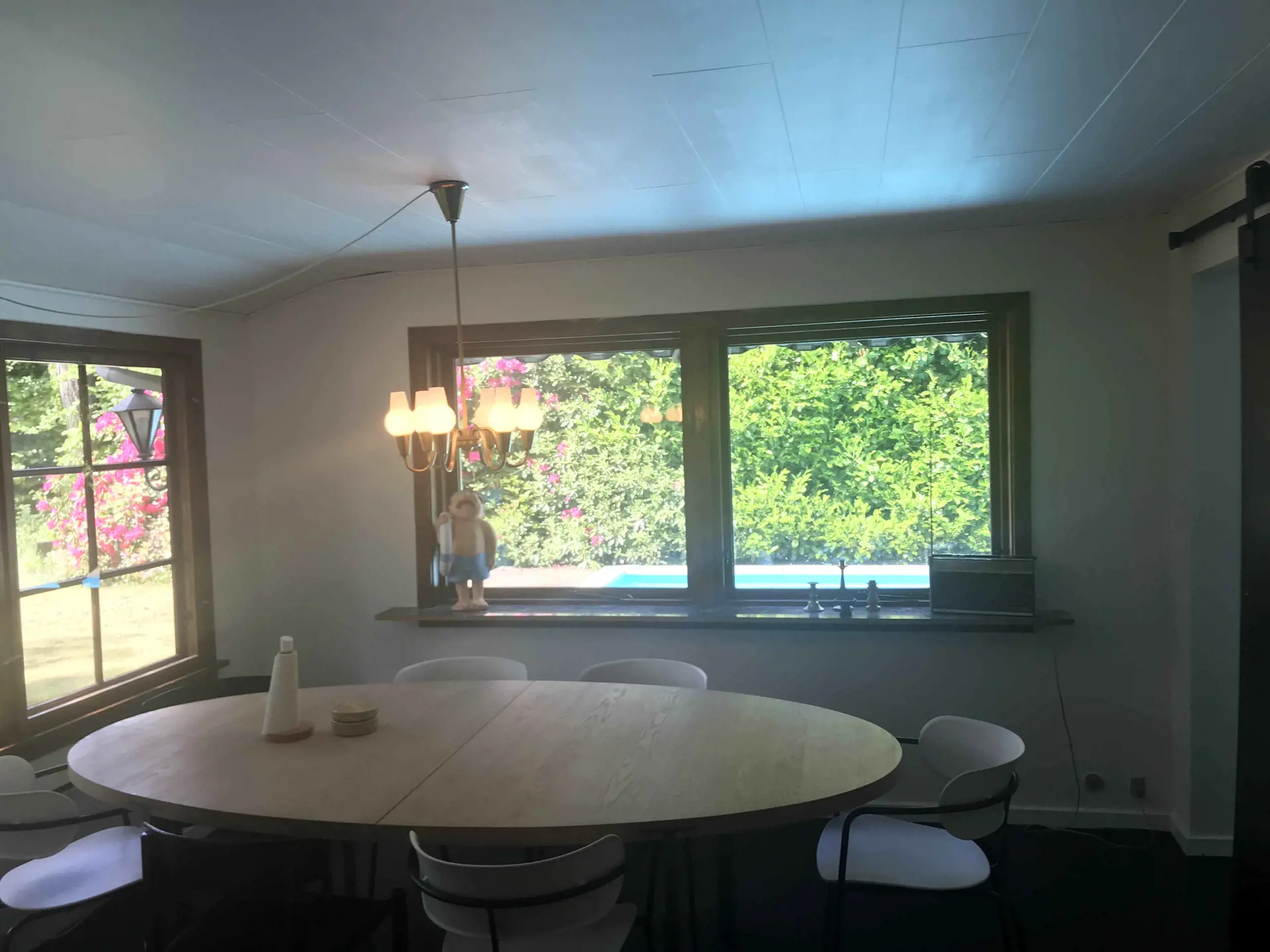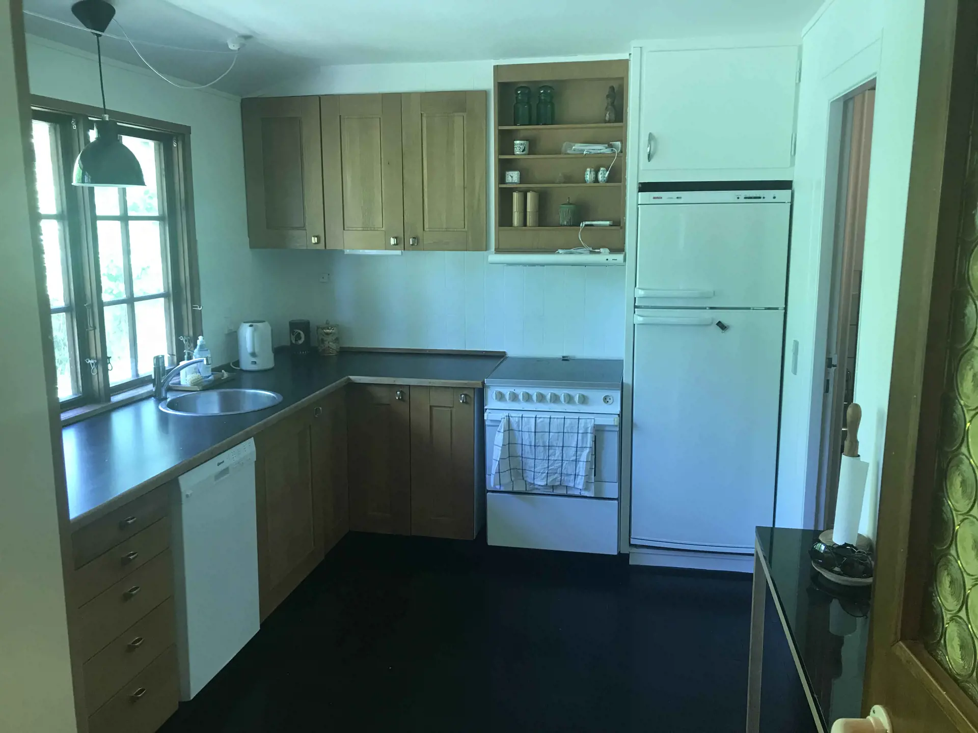 Dieses klassische Ferienhaus liegt auf einem schönen, großen Grundstück. Neben der Elektroheizung wird das Haus auch über zwei Wärmepumpen beheizt. Das schöne Wohnzimmer verfügt über einen Holzofen und vom Sofa aus können Sie durch die schöne Fensterfläche den Blick auf den schönen Garten genießen. (Hinweis: Es gibt kein kostenloses Brennholz, aber die Mieter können das Brennholz, das sich möglicherweise unter dem Ofen befindet, selbst verwenden. Brennholz kann im Supermarkt oder an Tankstellen gekauft werden.)