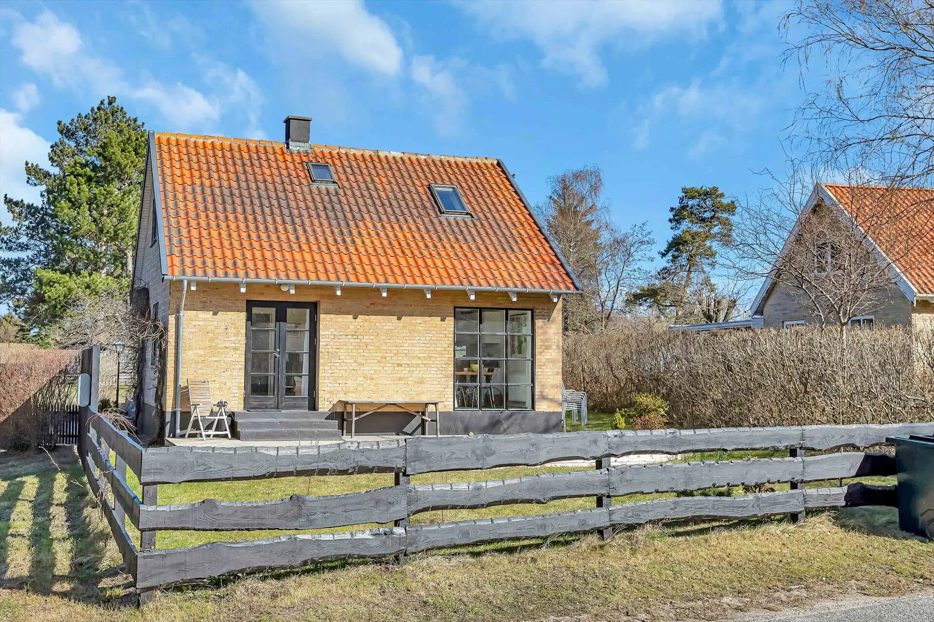 Das zweigeschossige Ferienhaus präsentiert sich hell und ausgesprochen einladend. Die moderne Küche ist offen mit dem Wohnraum verbunden. In diesem schönen Raum, der sich als beliebter Sammelpunkt erweist, bereitet ihr zusammen die Mahlzeiten zu, die ihr anschließend in geselliger Runde genießt. Viel Zeit werdet ihr in diesem Raum auch bei entspannten Stunden auf dem Sofa - mit einem spannenden Buch oder einem unterhaltsamen Spiel - verbringen. Der Rest der Wohnfläche ist zwei ansprechenden Schlafräumen und einem schönen Duschbad überlassen. Wenn deine Familie beispielsweise die Großeltern mit in den Urlaub nehmen möchte, bietet es sich an, zusätzlich das große Nebengebäude zu nutzen, das eine Teeküche und ein separates Badezimmer beinhaltet.