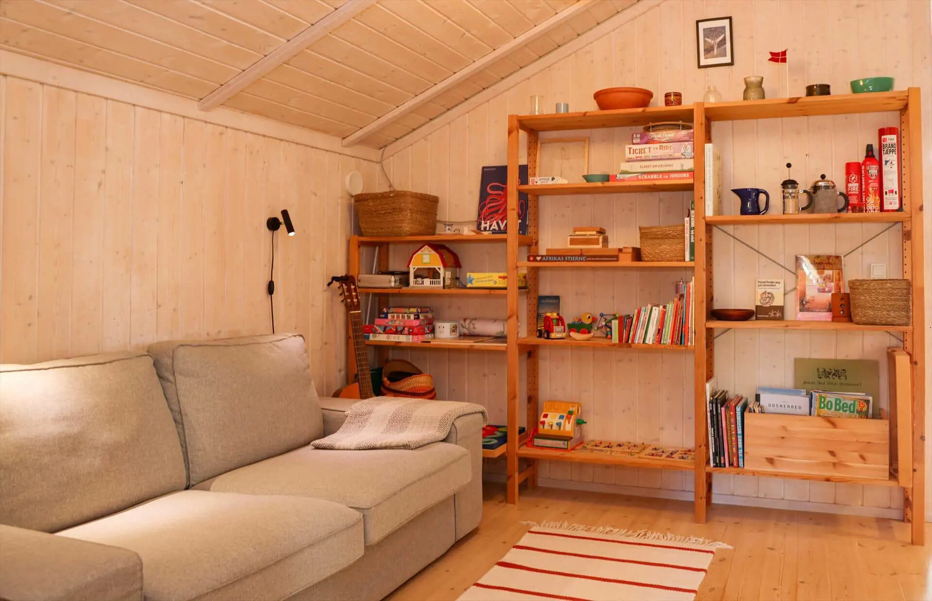 Das Ferienhaus präsentiert sich hell und ausgesprochen einladend. Innen genießt du einen wunderschönen Blick hinaus auf das naturbelassene Grundstück. Der Wohn- und Essbereich bildet das Herzstück des Hauses. Hier kannst du viele schöne Momente genießen – bei einem guten Abendessen oder mit einem spannenden Buch auf dem Sofa, während der Kaminofen leise knistert. In der schönen offenen Küche kannst du wunderbar eine gemütliche Zeit mit deinen Kindern oder Enkelkindern verbringen, zum Beispiel beim Backen von Muffins oder Brötchen, die ihr anschließend gemeinsam auf dem überdachten Teil der Terrasse genießt.