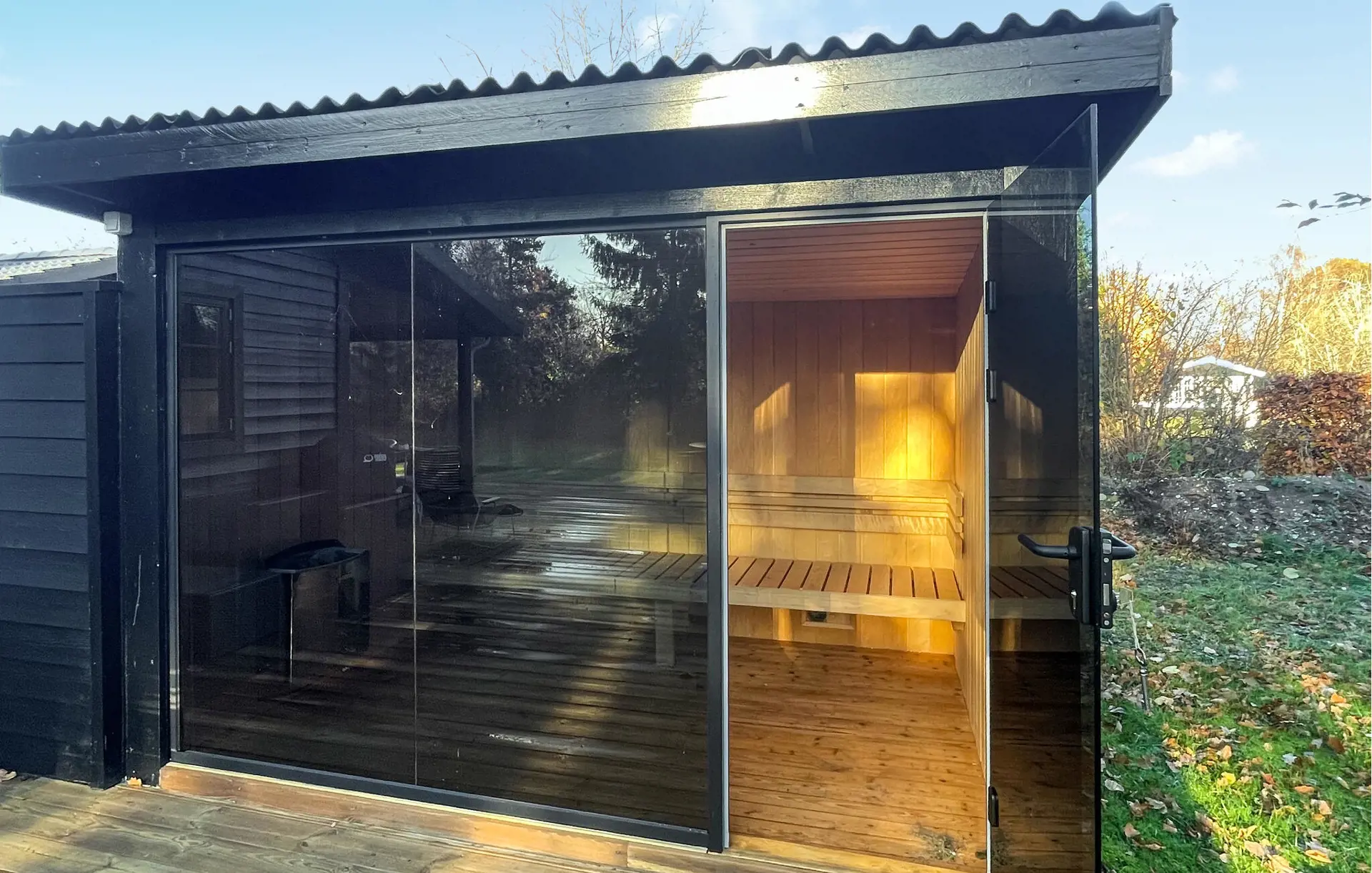 Die dunkle Holzfassade verleiht dem Haus einen harmonischen, modernen Charakter, der sich gut in die ruhige Umgebung einfügt. Setzen Sie sich in die Outdoor-Sitzgruppe, genießen Sie die Sonne oder bereiten Sie entspannte Grillabende vor. Ein besonderes Highlight ist die separate Sauna mit großer Glasfront. Gönnen Sie sich wohltuende Wärme und den Blick ins Grüne.