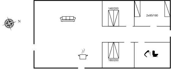 Die Schlafplätze verteilen sich auf 3 Schlafräume. 4 Schlafplätze in Doppelbetten. 2 Schlafplätze in Einzelbetten. Ferner steht ein Kinderbett zur Verfügung.