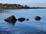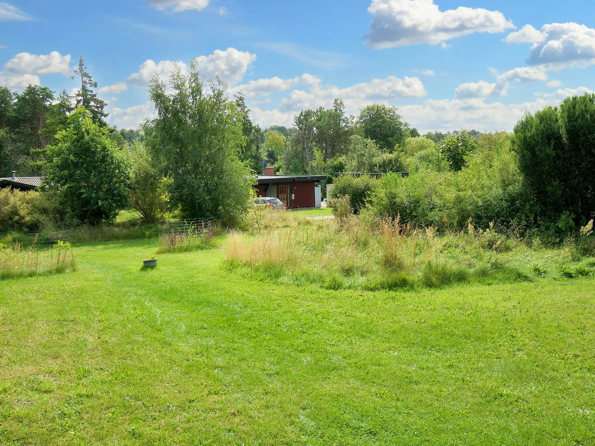 Ferienhaus mit Blick zum Wasser von einer der Terrassen und ruhiger Lage nahe Ordrup. Das Ferienhaus bietet zwei Schlafzimmer mit je zwei Schlafplätzen sowie ein separates Nebengebäude mit Doppelbett. Offener Küchen-/Wohnbereich im Haus für das Familienleben.