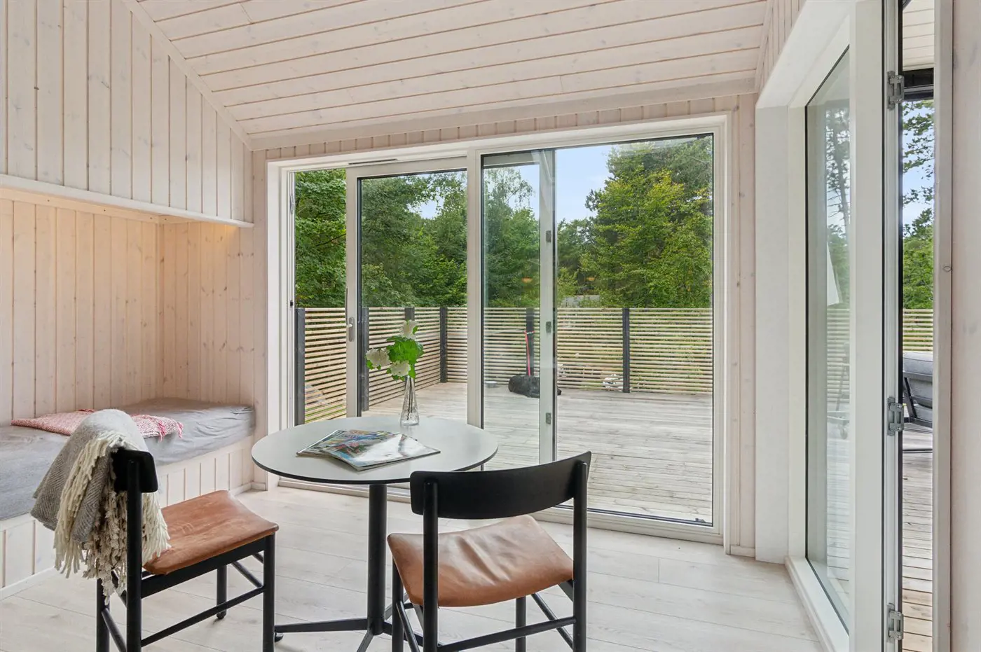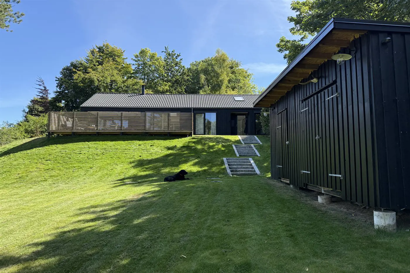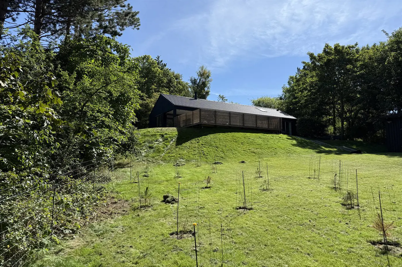 Neues, traumhaftes Ferienhaus (Baujahr 2024) im beliebten Ordrup – in Strand- und Waldnähe. Dieses fantastische, neu erbaute Ferienhaus liegt zentral im begehrten Ordrup, nur wenige Gehminuten vom Strand und Wald entfernt. Das Haus liegt auf einem ruhigen, ungestörten Grundstück in erhöhter Lage mit Blick in die Baumwipfel – sowohl vom Haus als auch von der großen Terrasse. Restaurants, Eisdiele und Einkaufsmöglichkeiten (saisonabhängig geöffnet) in nur 100 m Entfernung. Zur kinderfreundlichen, flach abfallenden Ordrup Strand mit langer Bade- und Bootsbrücke sind es lediglich 850 m.