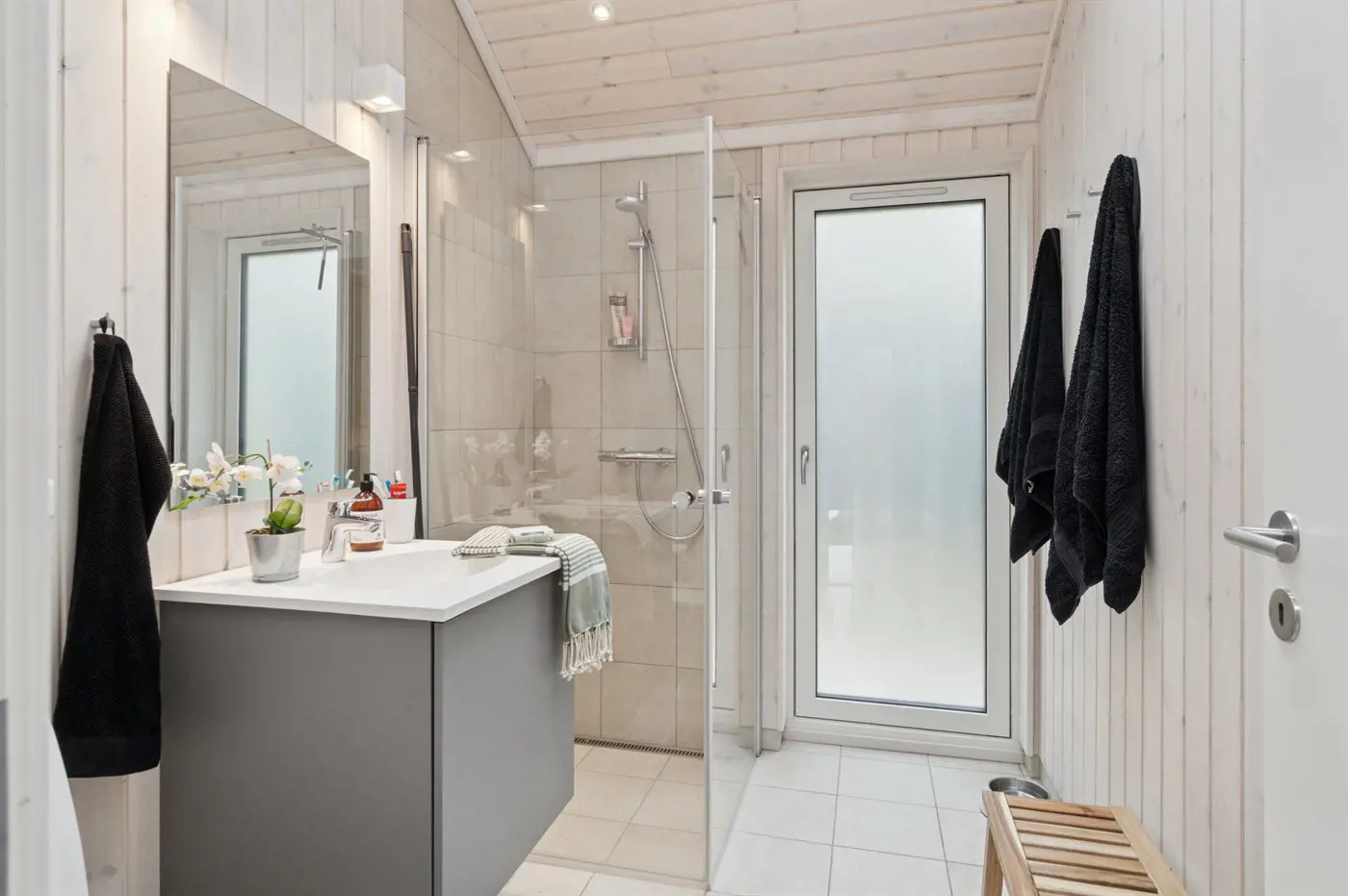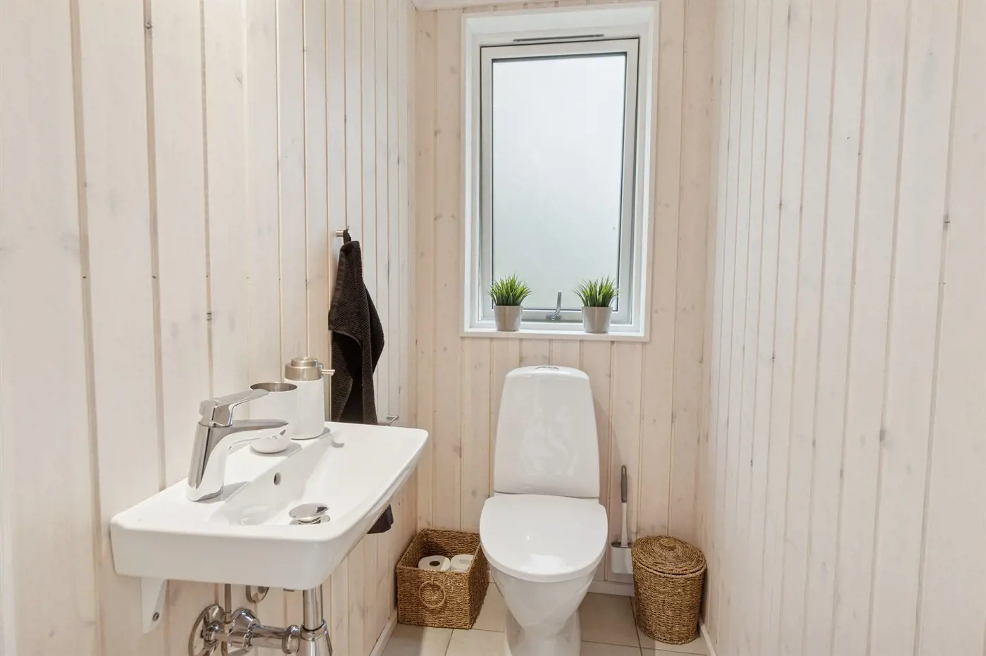 Es gibt insgesamt 4 Schlafzimmer: drei mit Doppelbetten und eines mit einem Doppelschlafsofa. Das Haus verfügt über ein Badezimmer mit Dusche, Fußbodenheizung und Ausgang zur Außendusche sowie ein zusätzliches Gäste-WC mit Fußbodenheizung. Waschmaschine vorhanden.
