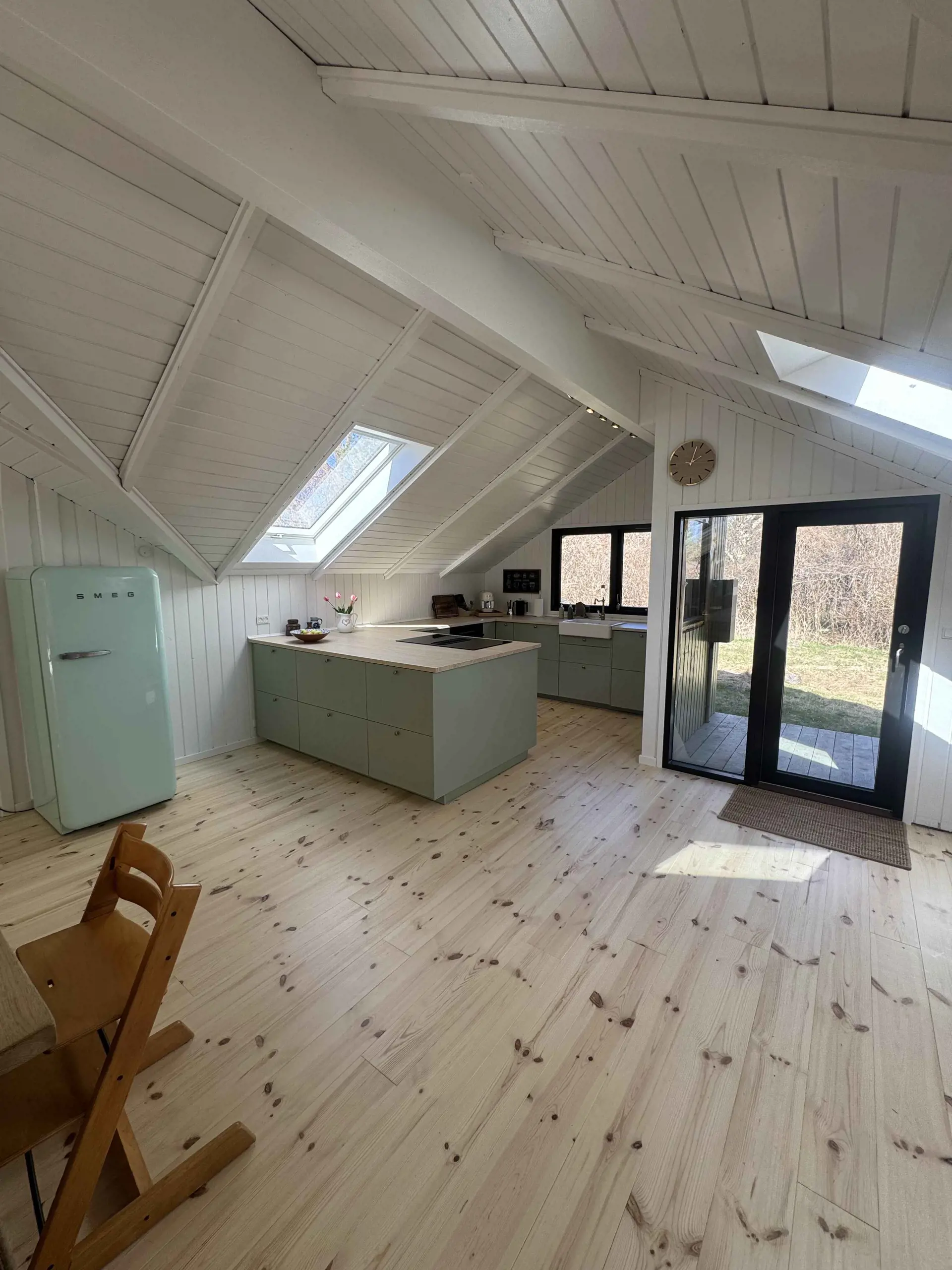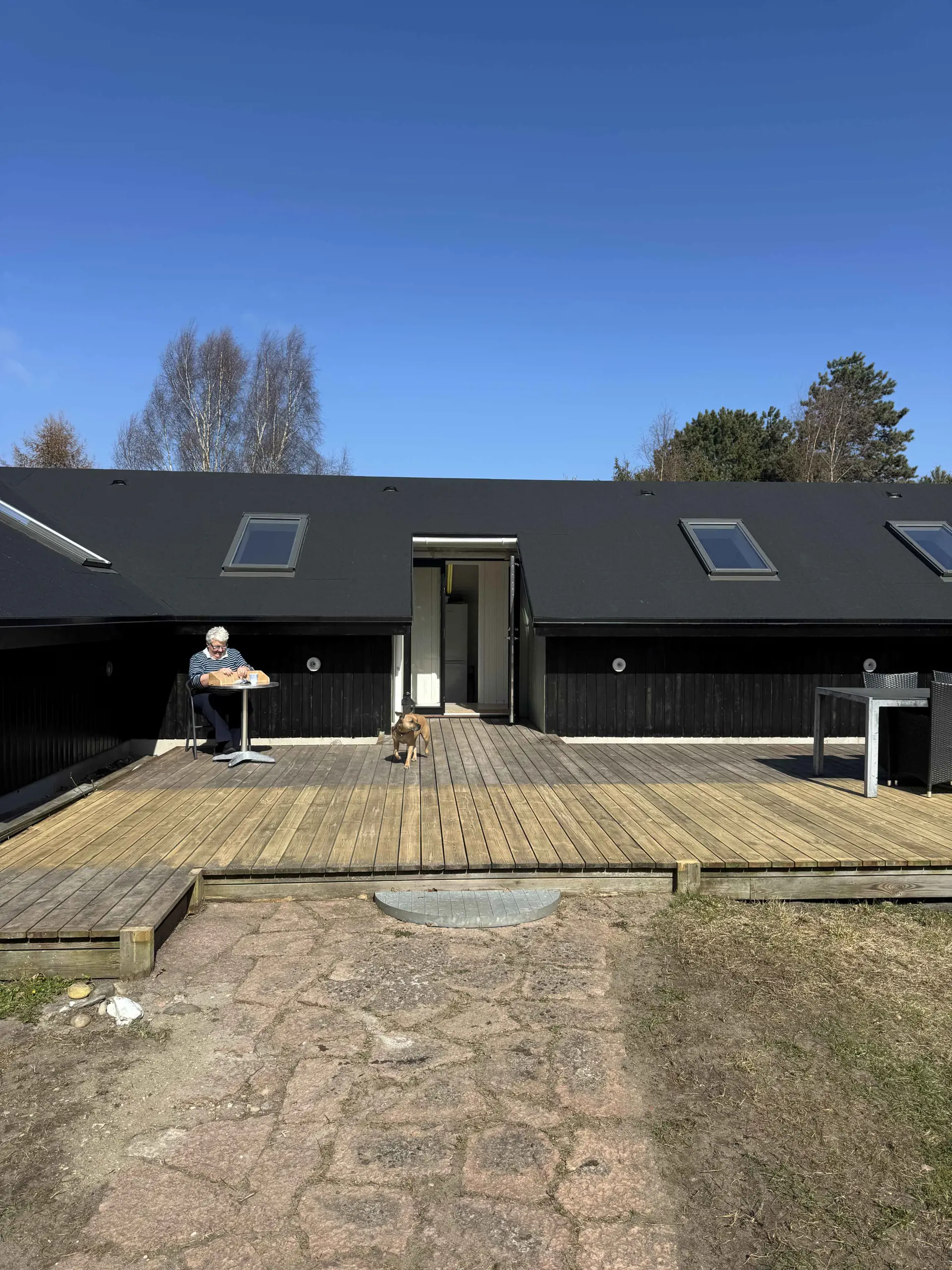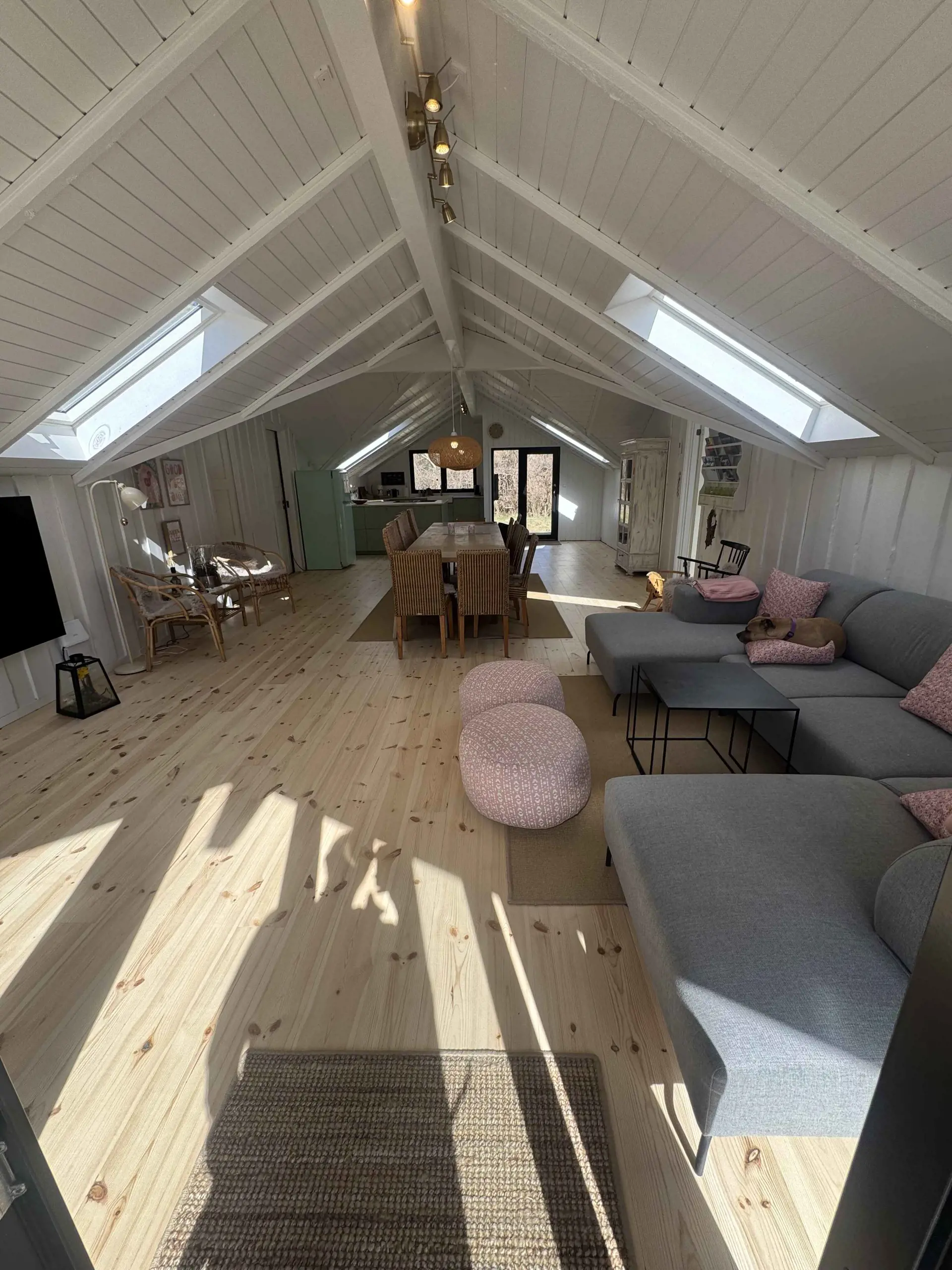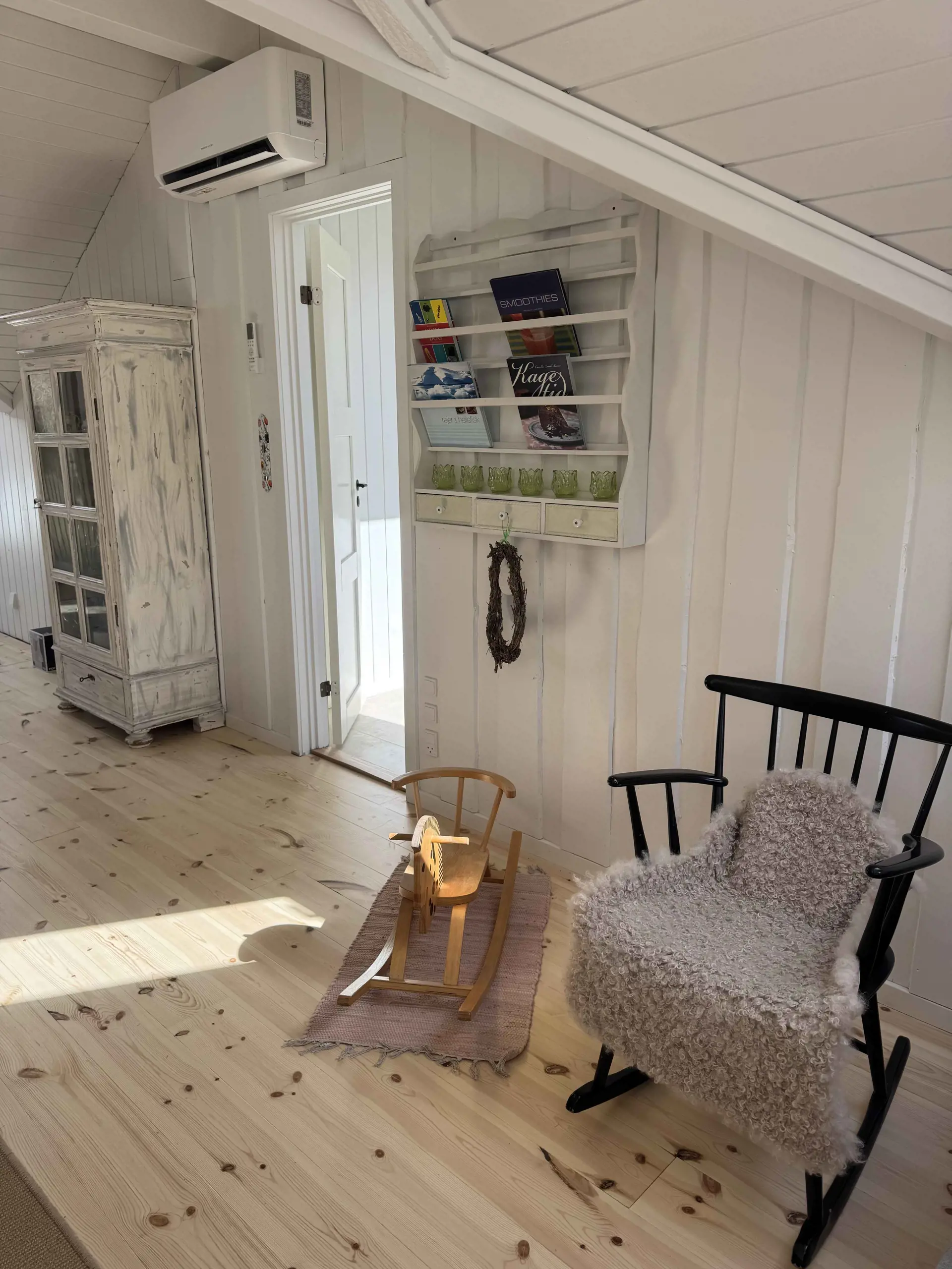 Ein Badezimmer mit Sauna sowie eine Außendusche stehen zur Verfügung. Der private Garten ist kinderfreundlich mit Sandkasten und Schaukel und auch gut für ältere Gäste geeignet.