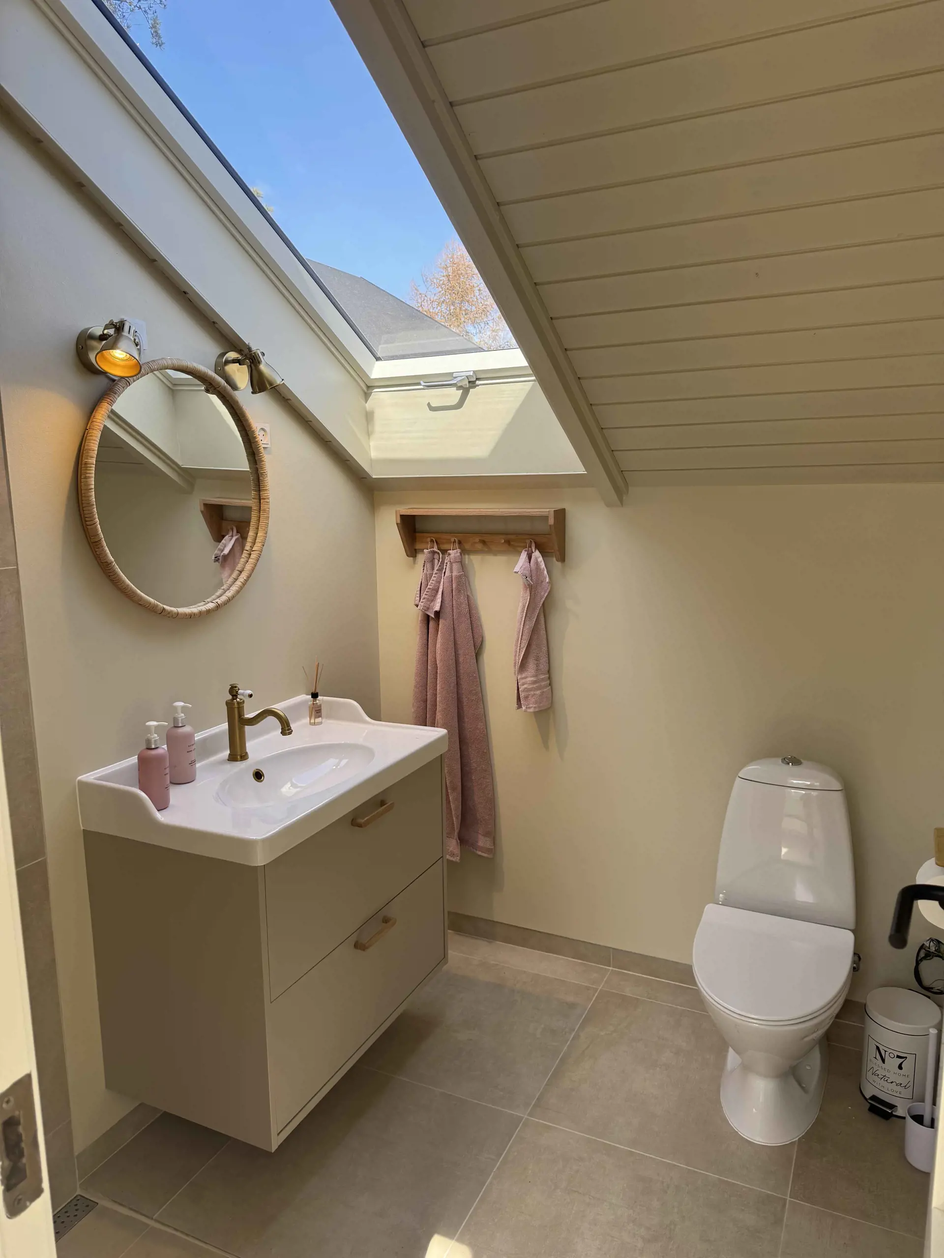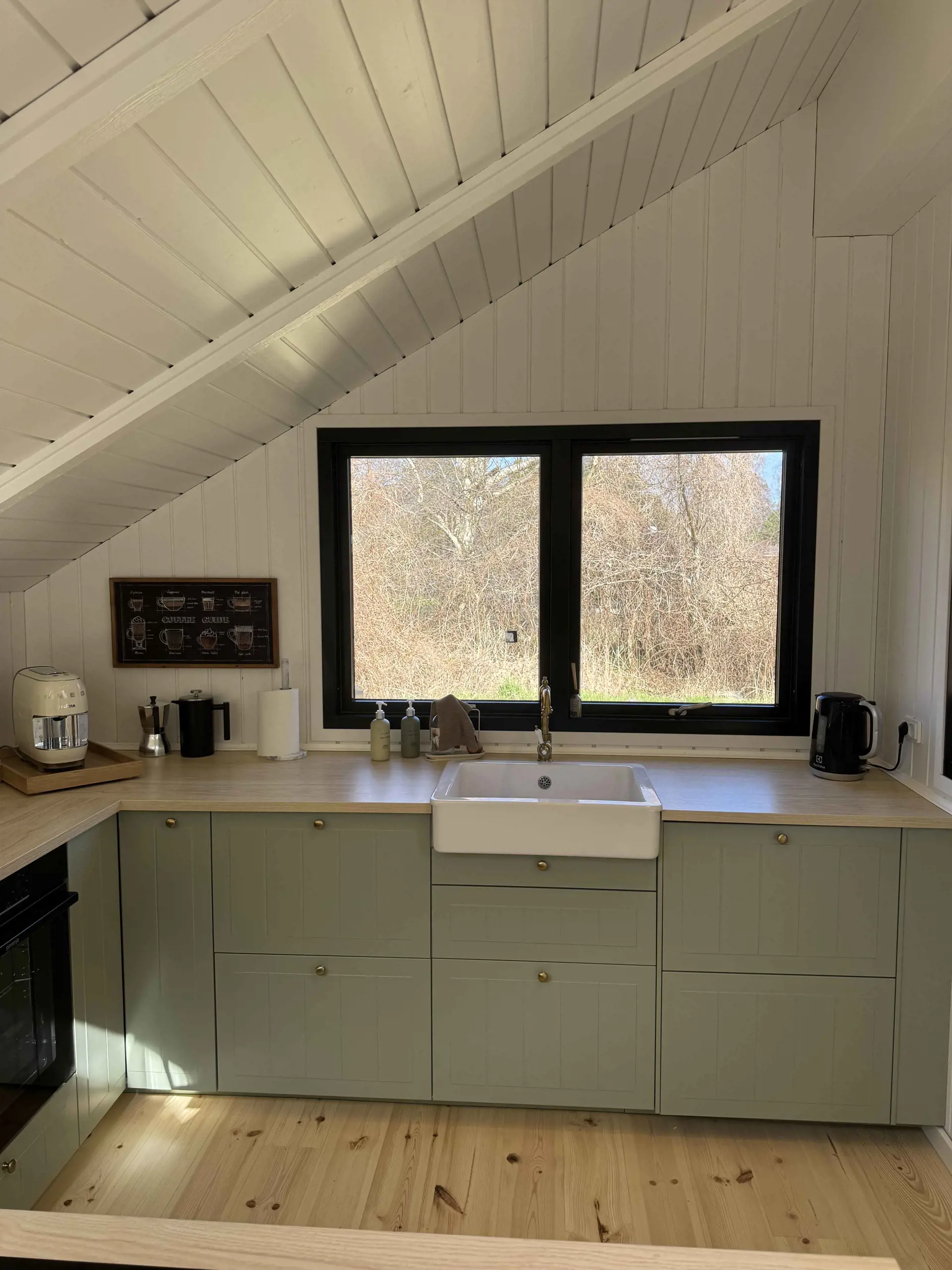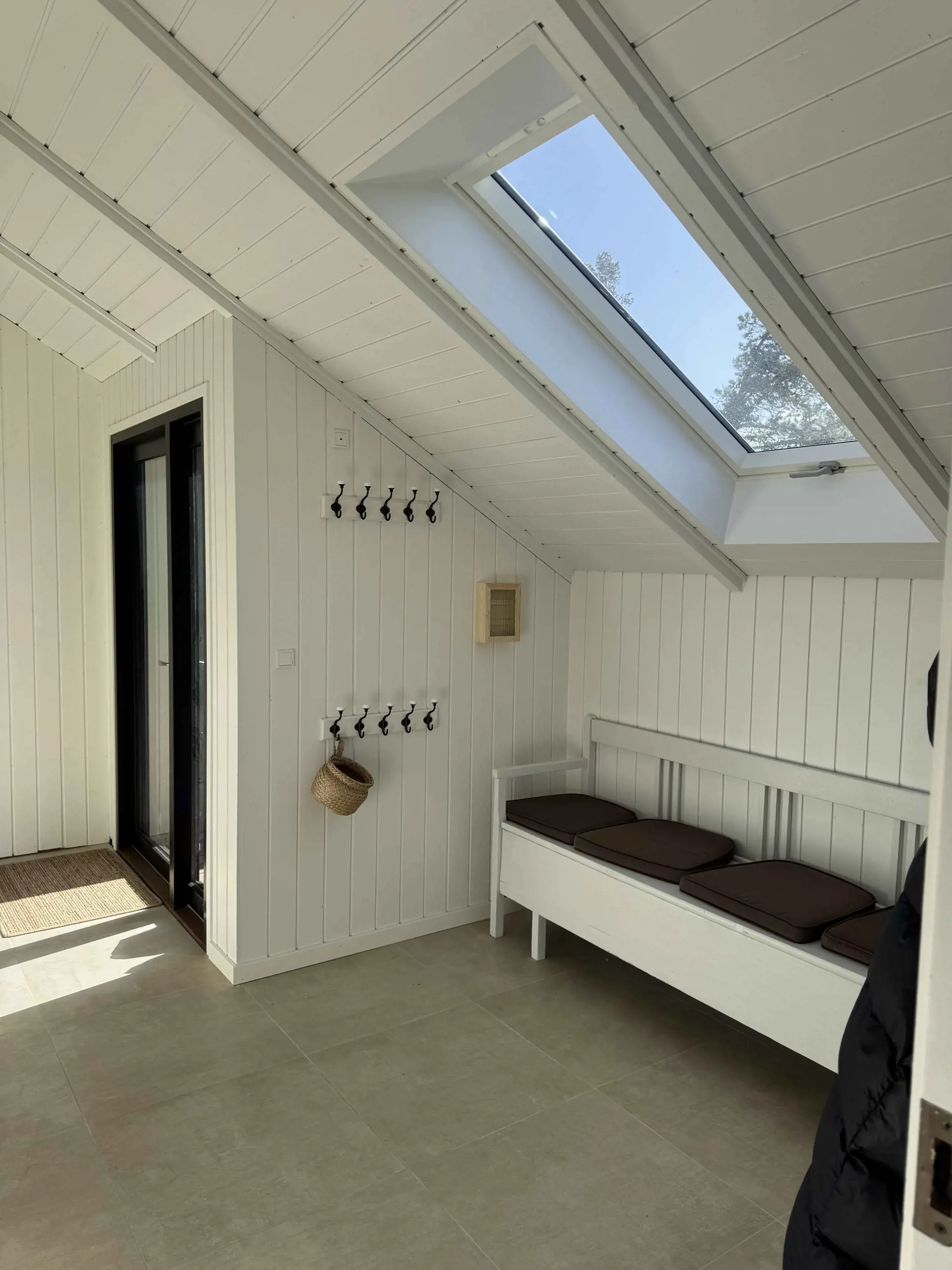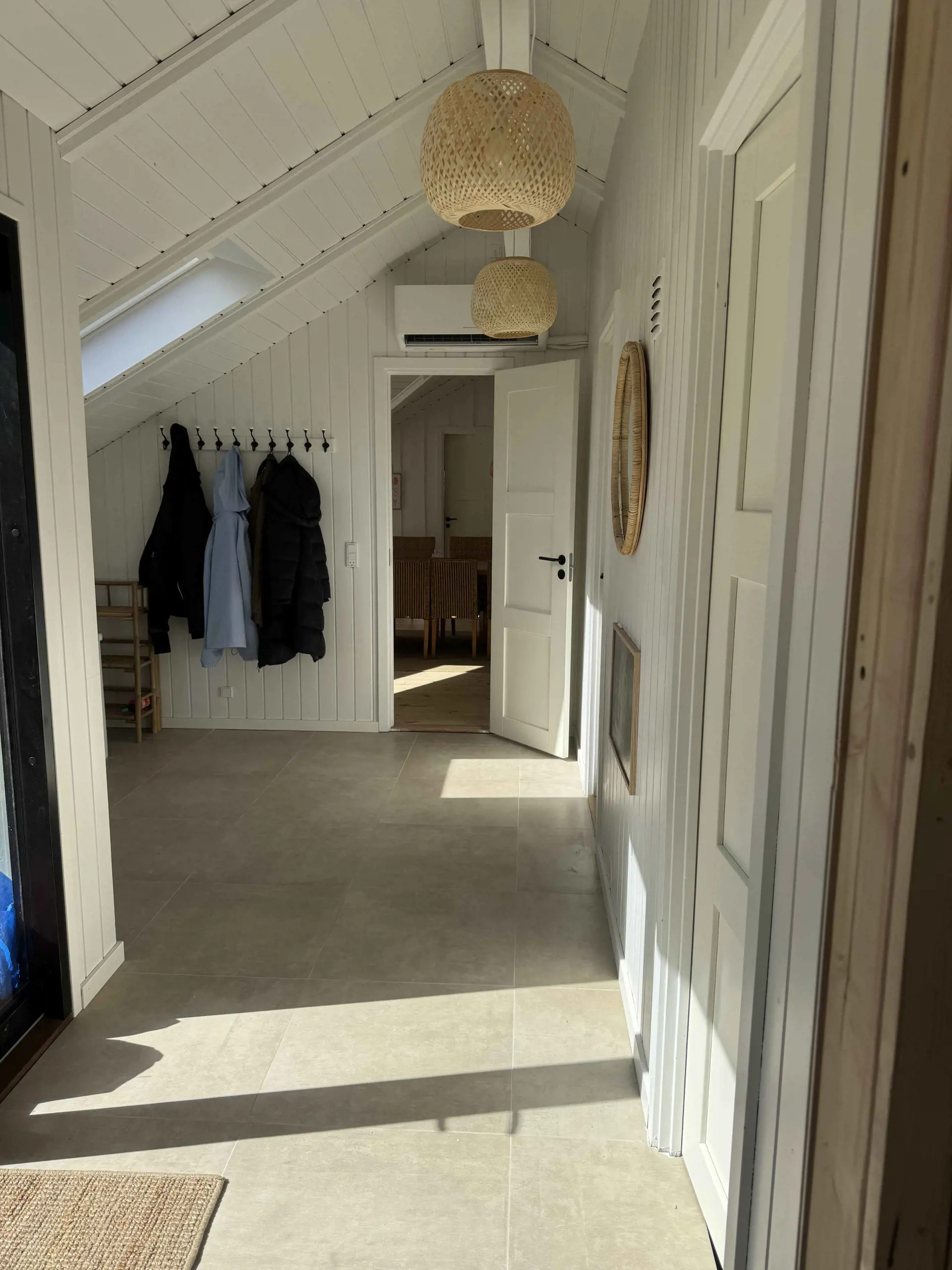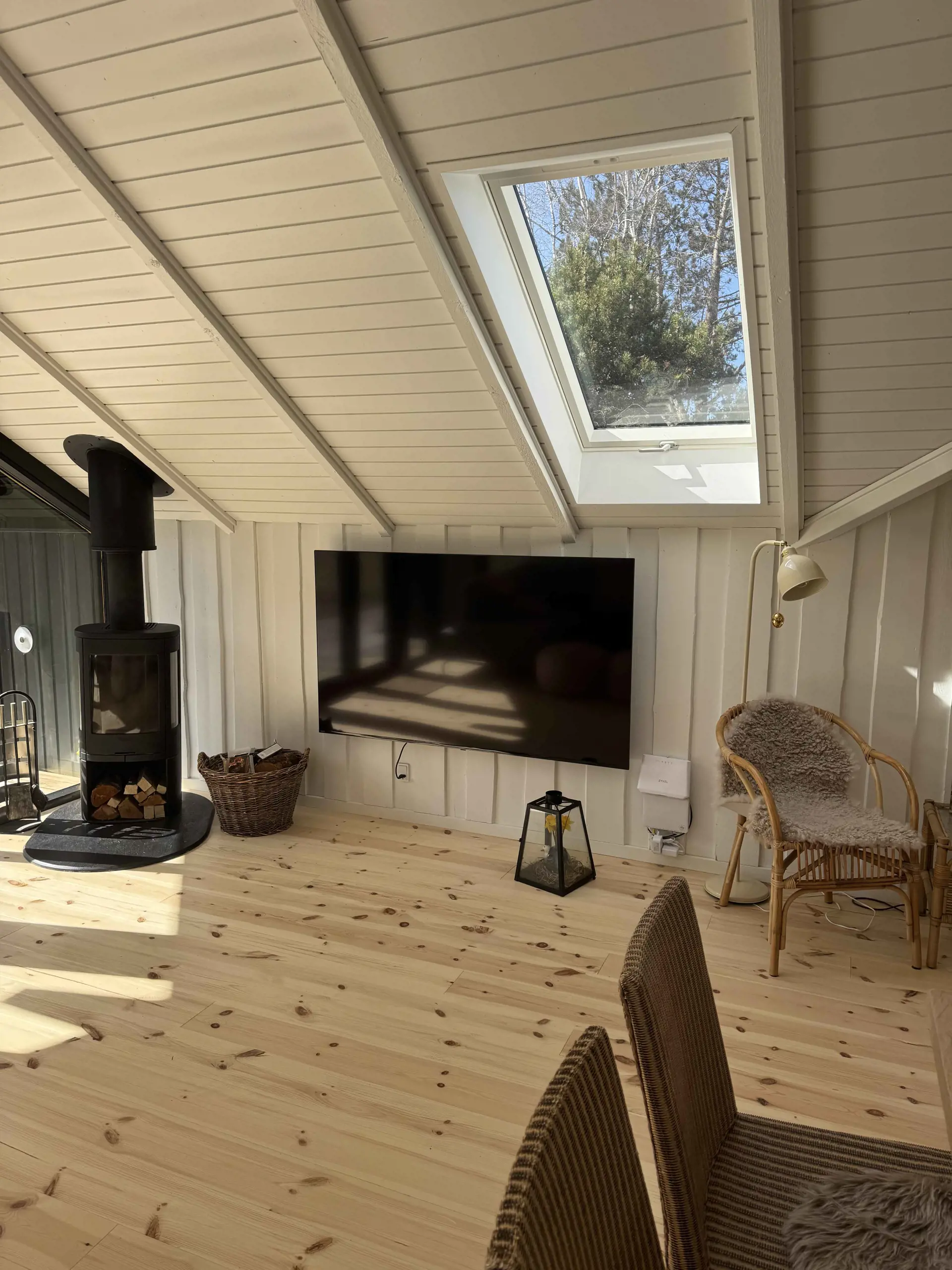 Ein Badezimmer mit Sauna sowie eine Außendusche stehen zur Verfügung. Der private Garten ist kinderfreundlich mit Sandkasten und Schaukel und auch gut für ältere Gäste geeignet.