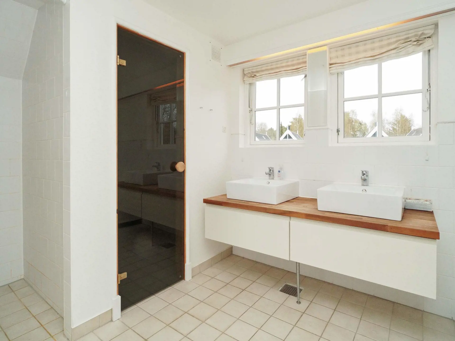 Im Parterre des Reihenhauses haben Sie vom offenen Ess-/Wohnbereich Zugang zur Terrasse sowie zu den gemeinschaftlichen Grünflächen mit Blick zum Pool. Das Haus verfügt über zwei Badezimmer, eines auf jeder Etage. Oben im größeren Bad sind auch Whirlpool und Sauna untergebracht.