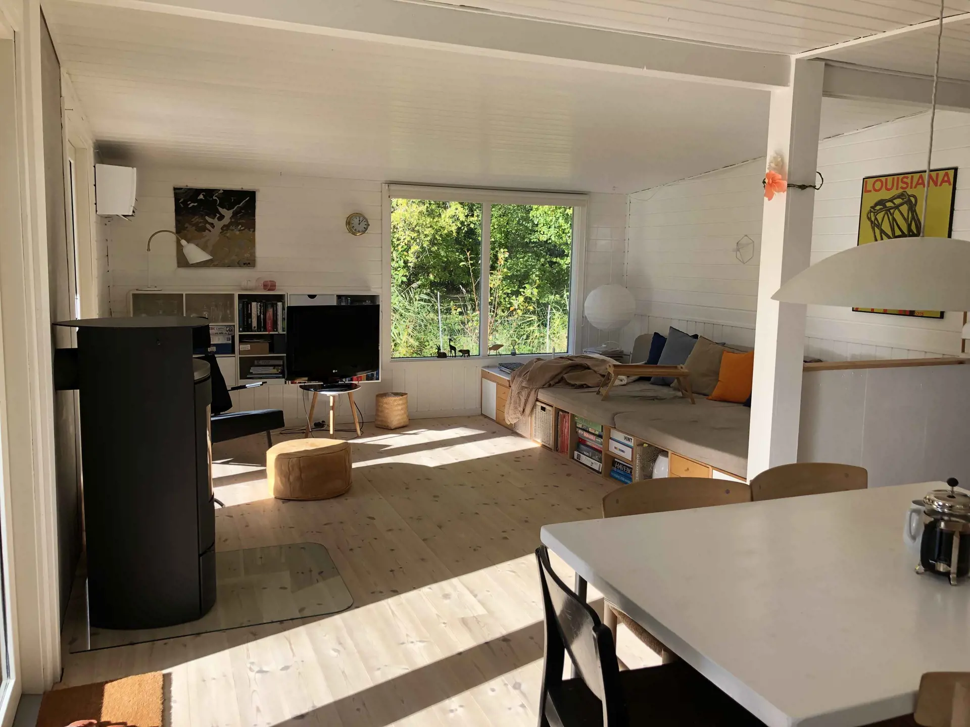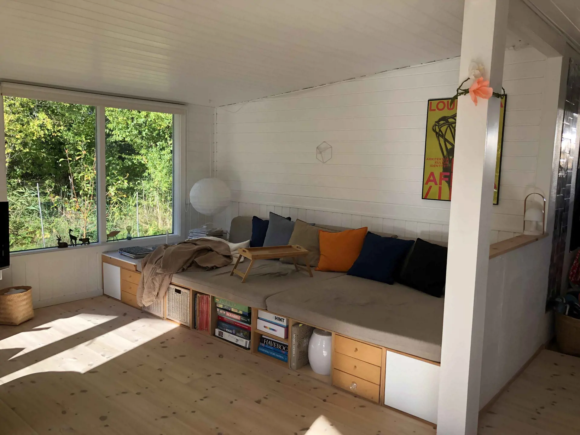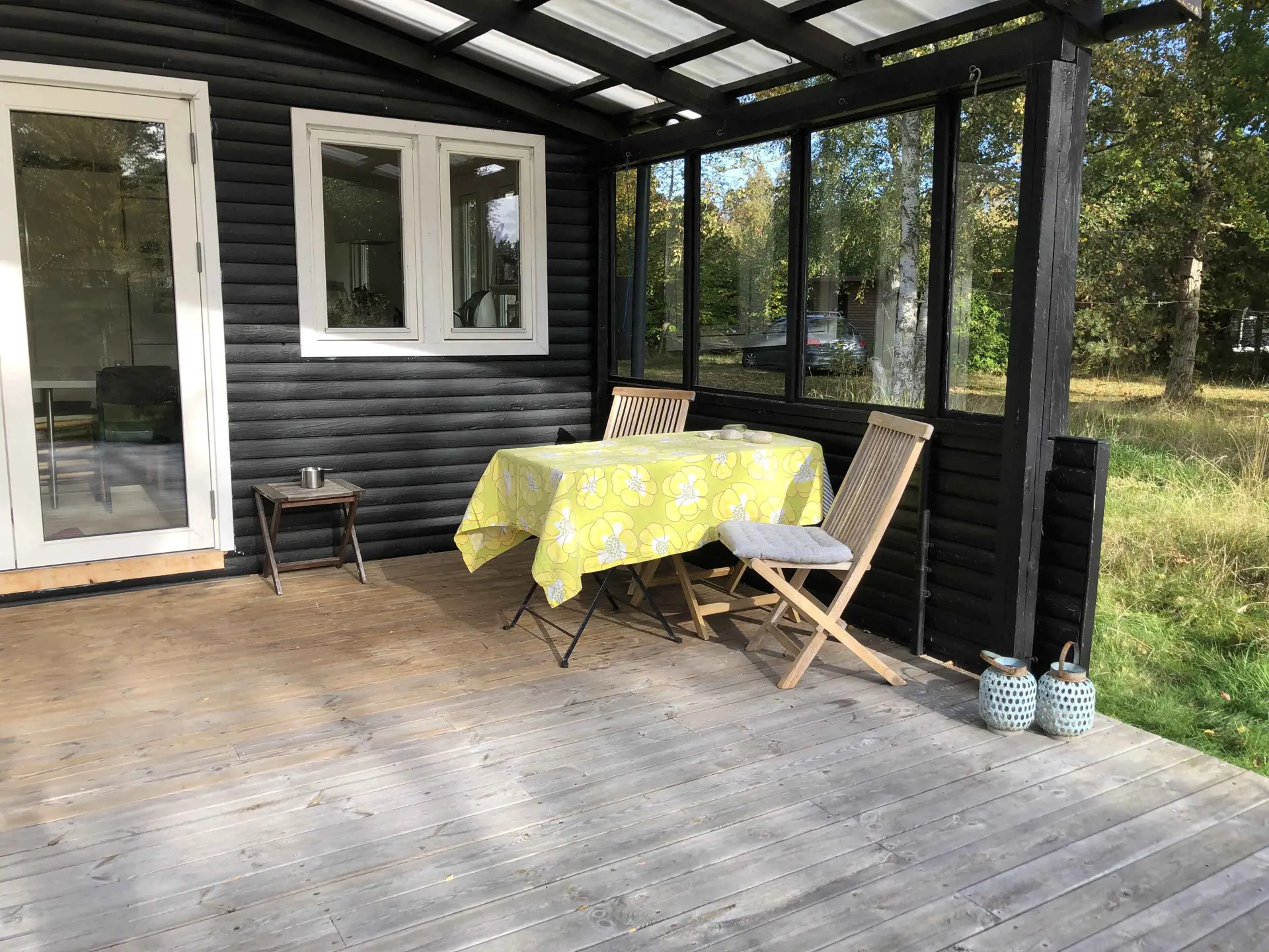 Das Ferienhaus bietet Platz für sechs Personen, aber wenn eine oder mehrere der sechs Personen unter freiem Himmel schlafen möchten, dann gibt es im Garten eine schöne Windschutzhütte.