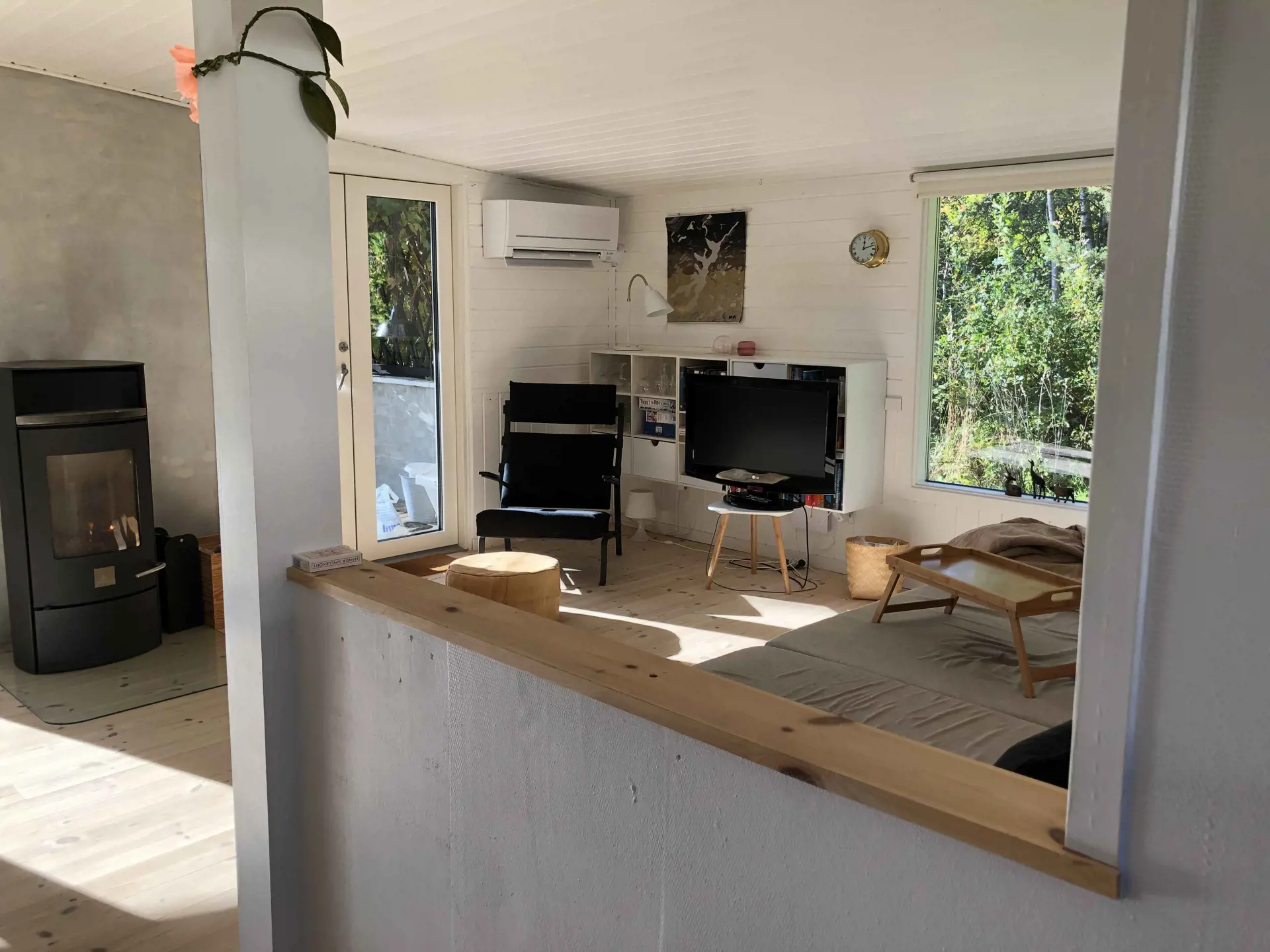Das Haus ist ausgestattet mit einer Wohnküche in offener Verbindung mit einer Eingangshalle, einem Schlafzimmer mit großem Doppelbett und einem Badezimmer.