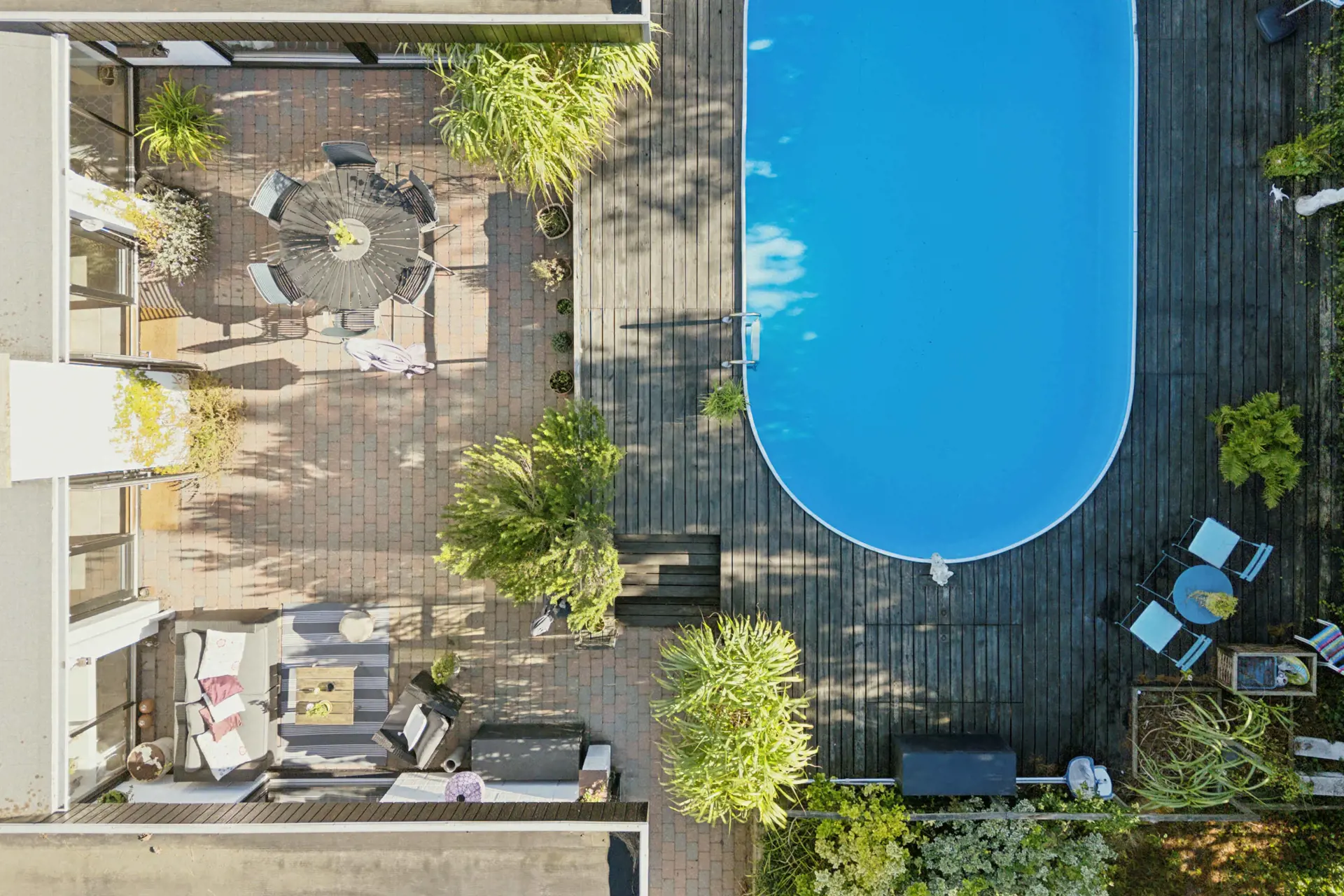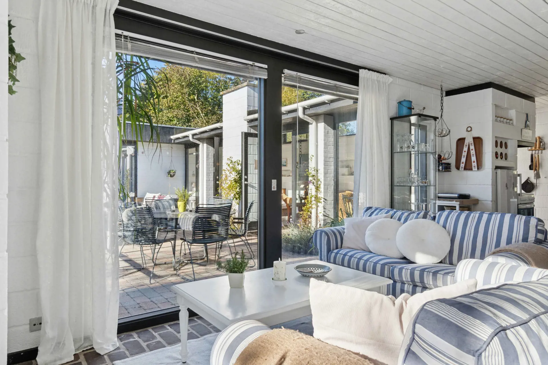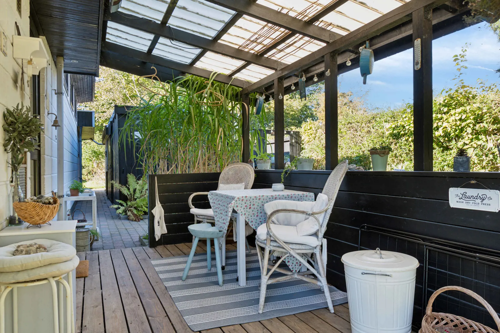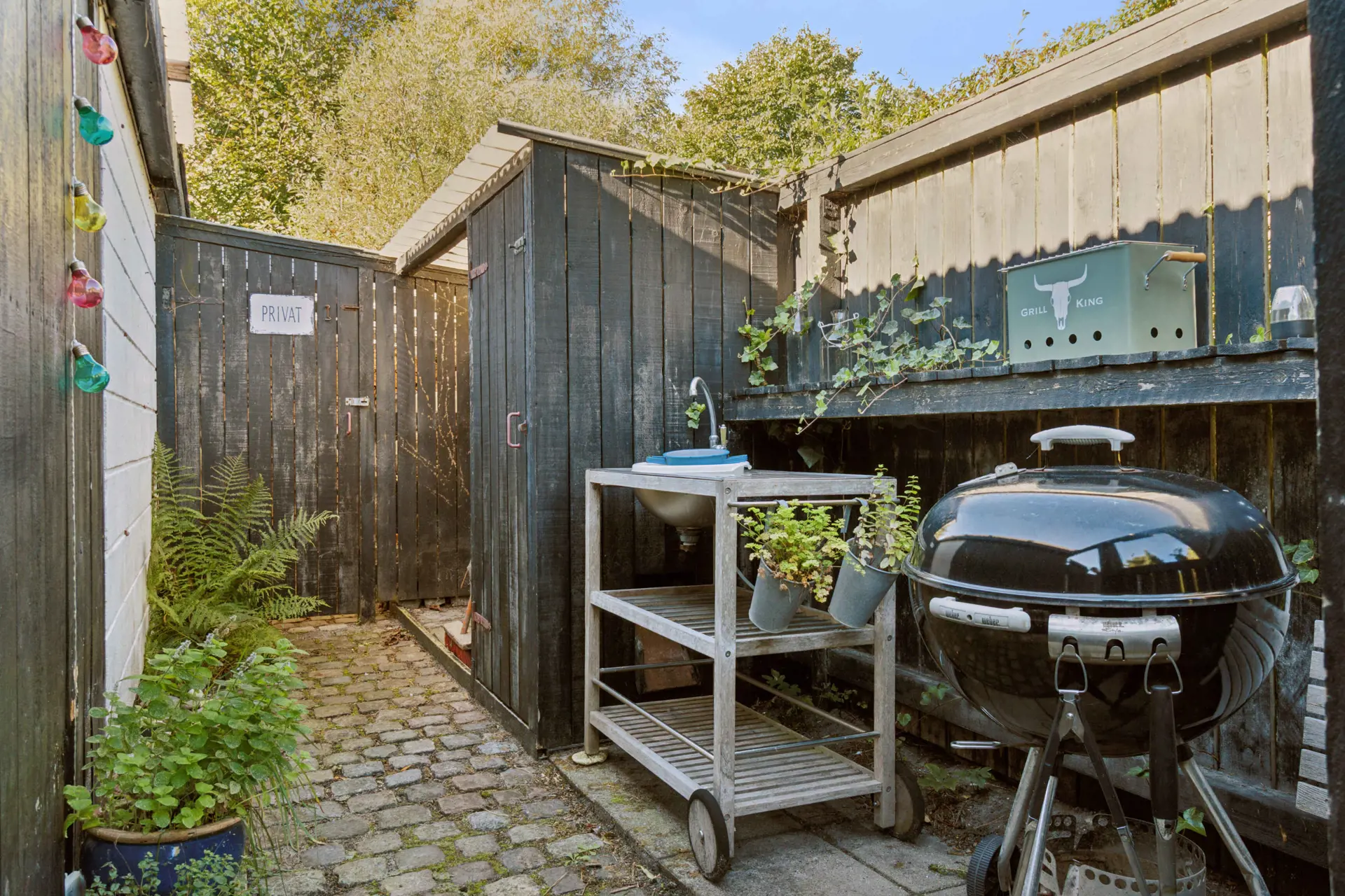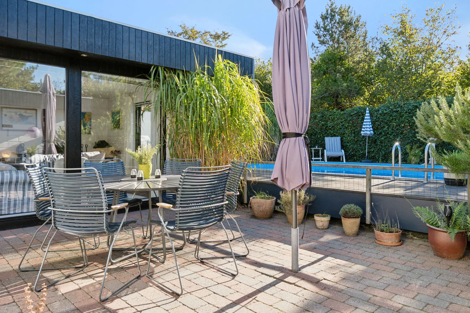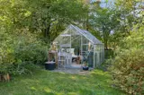 Draußen erwarten Sie zahlreiche Möglichkeiten. Die nordwestlich ausgerichtete, überdachte Terrasse mit Grill lädt zu gemütlichen Abenden mit gutem Essen und langen Gesprächen ein. Das Orangeriehaus schafft einen zusätzlichen Außenraum, eingerichtet für Behaglichkeit und mit der Möglichkeit, die Saison unabhängig vom Wetter zu verlängern.