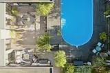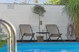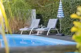 Der Pool ist direkt mit dem Haus über die Terrasse verbunden, wo sich das Wohnzimmer zur Sonne hin öffnet. Das hufeisenförmige Gebäude bietet Schutz, sodass das Leben im Freien ungestört genossen werden kann. Innen und außen gehen hier auf natürliche Weise ineinander über – jeder Tag im Einklang mit dem Licht. Der Pool ist nicht beheizt, erreicht aber im Sommer etwa 24 °C. Dies kann jedoch nicht garantiert werden, da es vom Wetter abhängt.