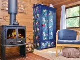 Das Wohnzimmer: Das helle und geräumige Wohnzimmer ist mit bequemen Möbeln und großen Fenstern ausgestattet, die viel Tageslicht hereinlassen. Hier finden Sie einen gemütlichen Holzofen, der an kühleren Tagen für Wärme und Atmosphäre sorgt. Es gibt einen Fernseher mit Chromecast und ein Radio, so dass es viele Möglichkeiten zur Entspannung und Unterhaltung für die ganze Familie gibt.