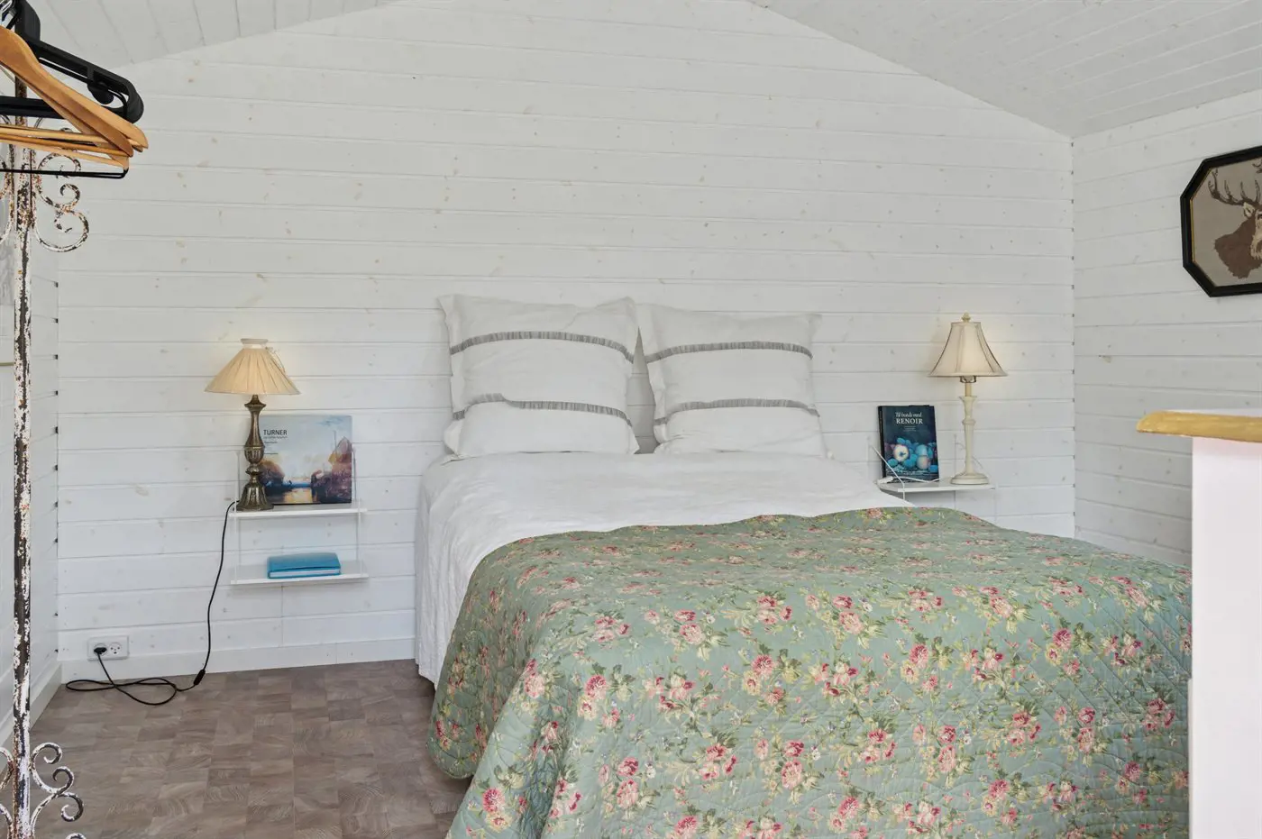 Im Ferienhaus gibt es ein Schlafzimmer mit drei Schlafplätzen – ein Doppelbett und ein Ausziehbett. Außerdem steht dir im Wohnzimmer ein Doppelschlafsofa zur Verfügung. Im Gästehaus, das etwa 17 Meter vom Haupthaus entfernt liegt, findest du ein weiteres Doppelbett.