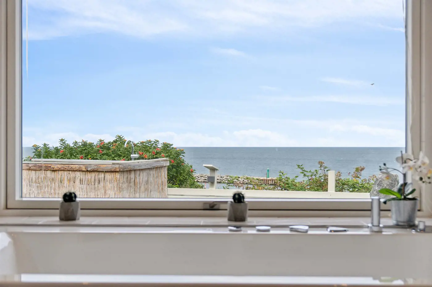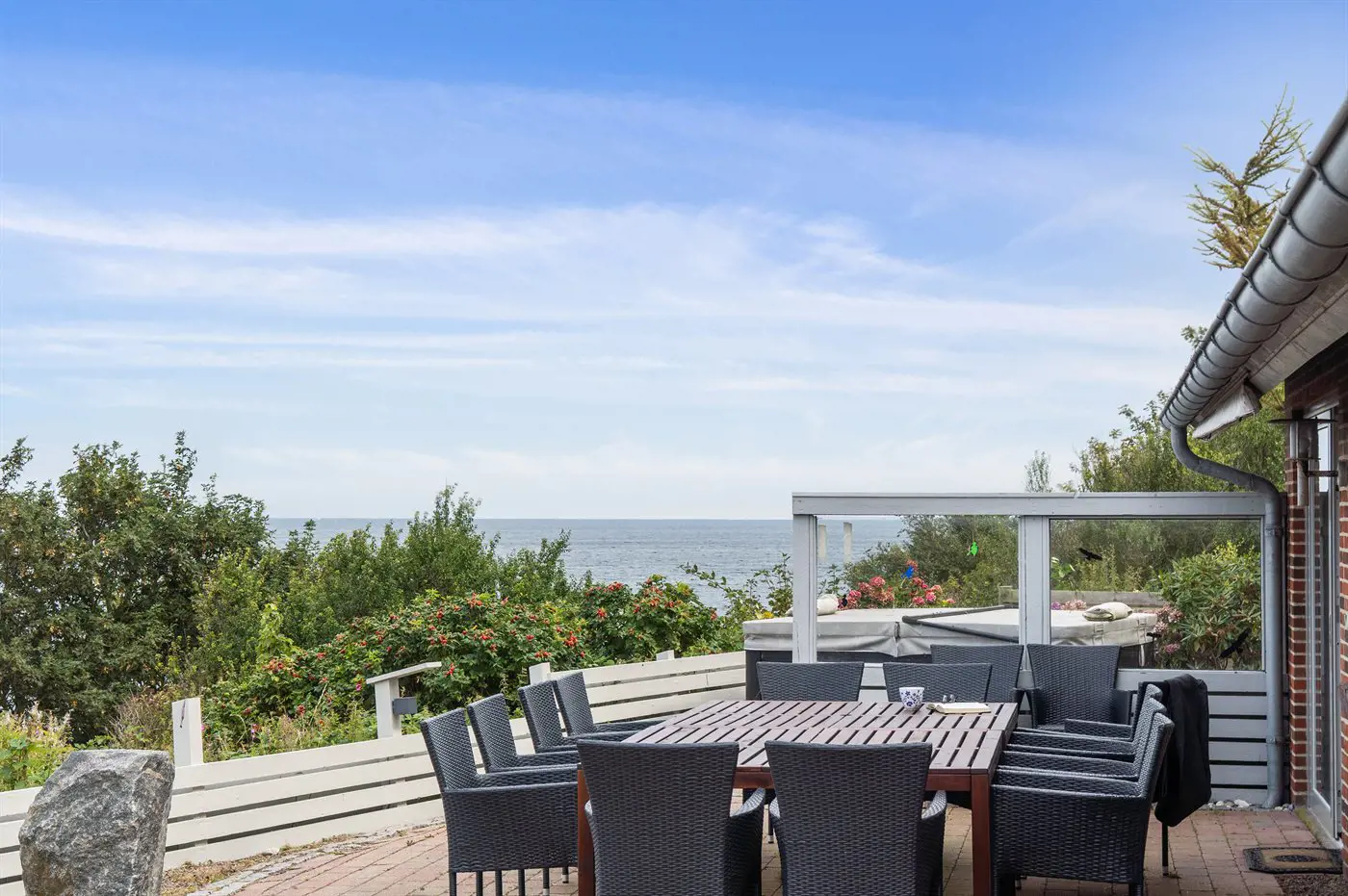 Das Haus ist groß und geräumig – ideal, um gemeinsam mit Familie und Freunden eine schöne Zeit zu verbringen. Im Anschluss an die gute Wohnküche findest du eine gemütliche Sofaecke mit Sesseln. Es gibt Ausgänge zu Terrassen auf beiden Seiten des Hauses. Auf der nordseitigen Terrasse eröffnet sich dir die volle Aussicht – hier findest du auch einen Outdoor-Whirlpool und eine Außenküche.