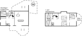 Im Erdgeschoss gibt es ein Schlafzimmer mit einem Doppelbett und einem Etagenbett. Außerdem findest du hier ein Badezimmer mit Fußbodenheizung, Duschnische und Whirlpool sowie einen praktischen Hauswirtschaftsraum mit Waschmaschine und Trockner.