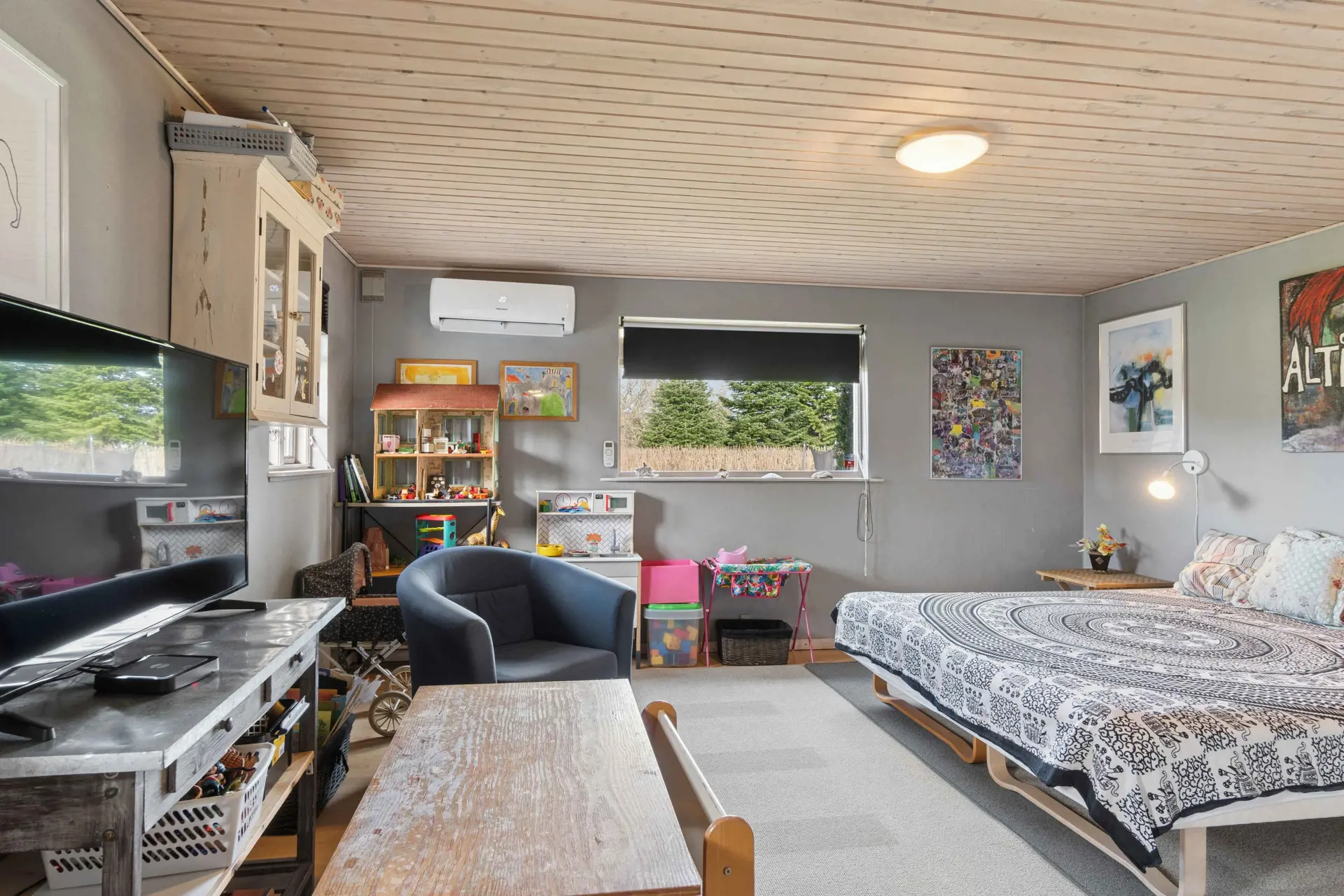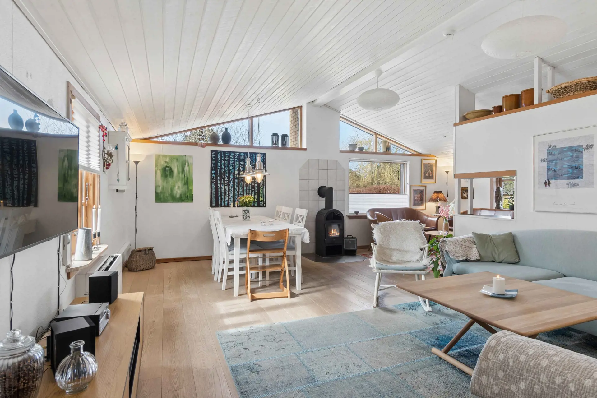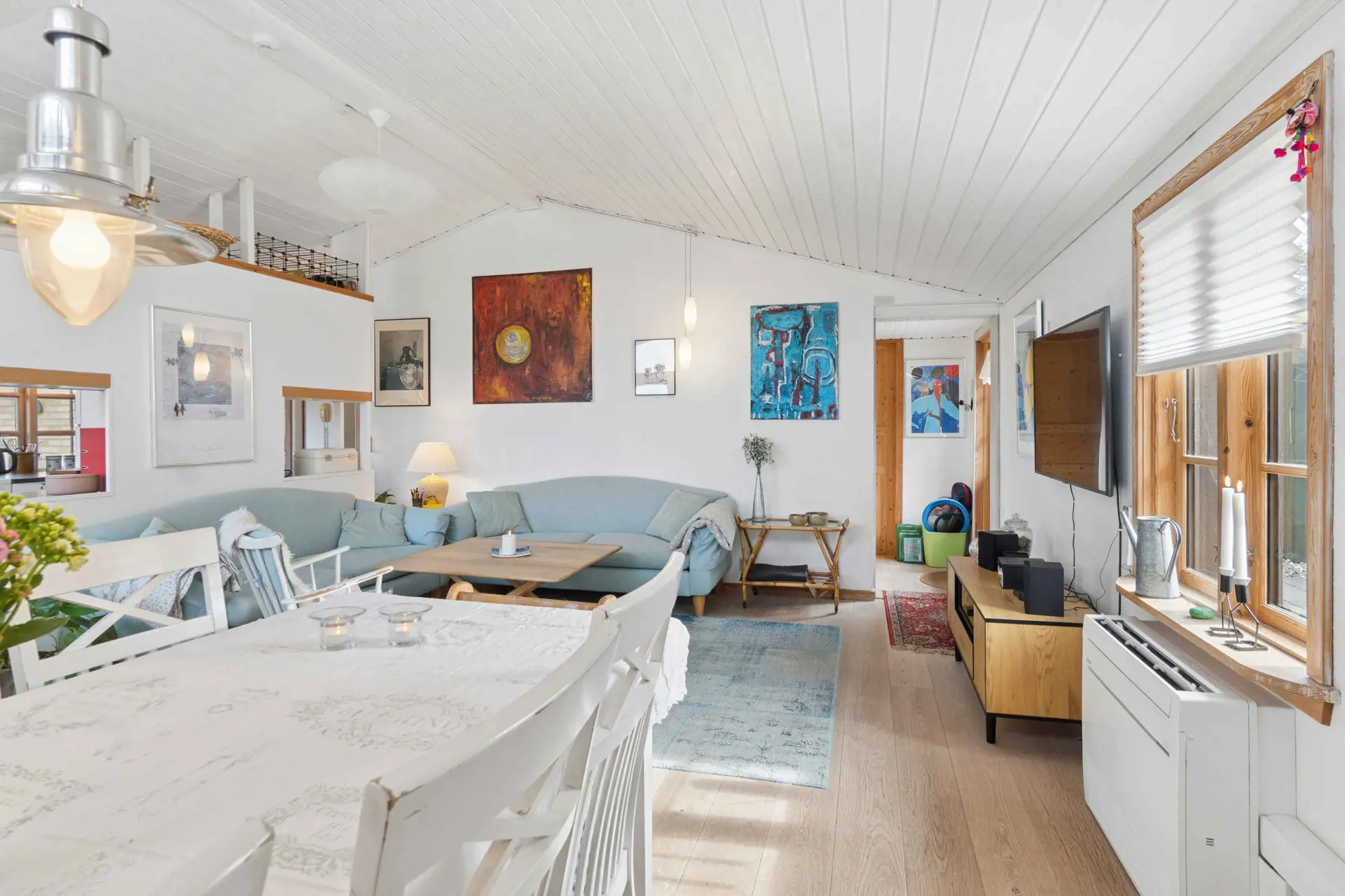 Das große Wohnzimmer ist der natürliche Mittelpunkt des Hauses – mit Essbereich und gemütlicher Sofaecke. Es gibt 2 Fernseher mit vielen Sendern (dänische, schwedische, norwegische und deutsche) sowie Zugang zu verschiedenen Streaming-Diensten, sodass für Unterhaltung für die ganze Familie gesorgt ist.