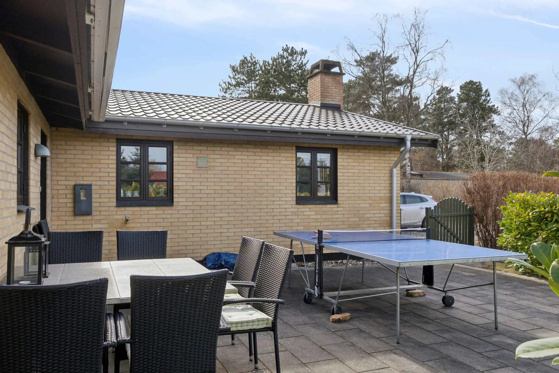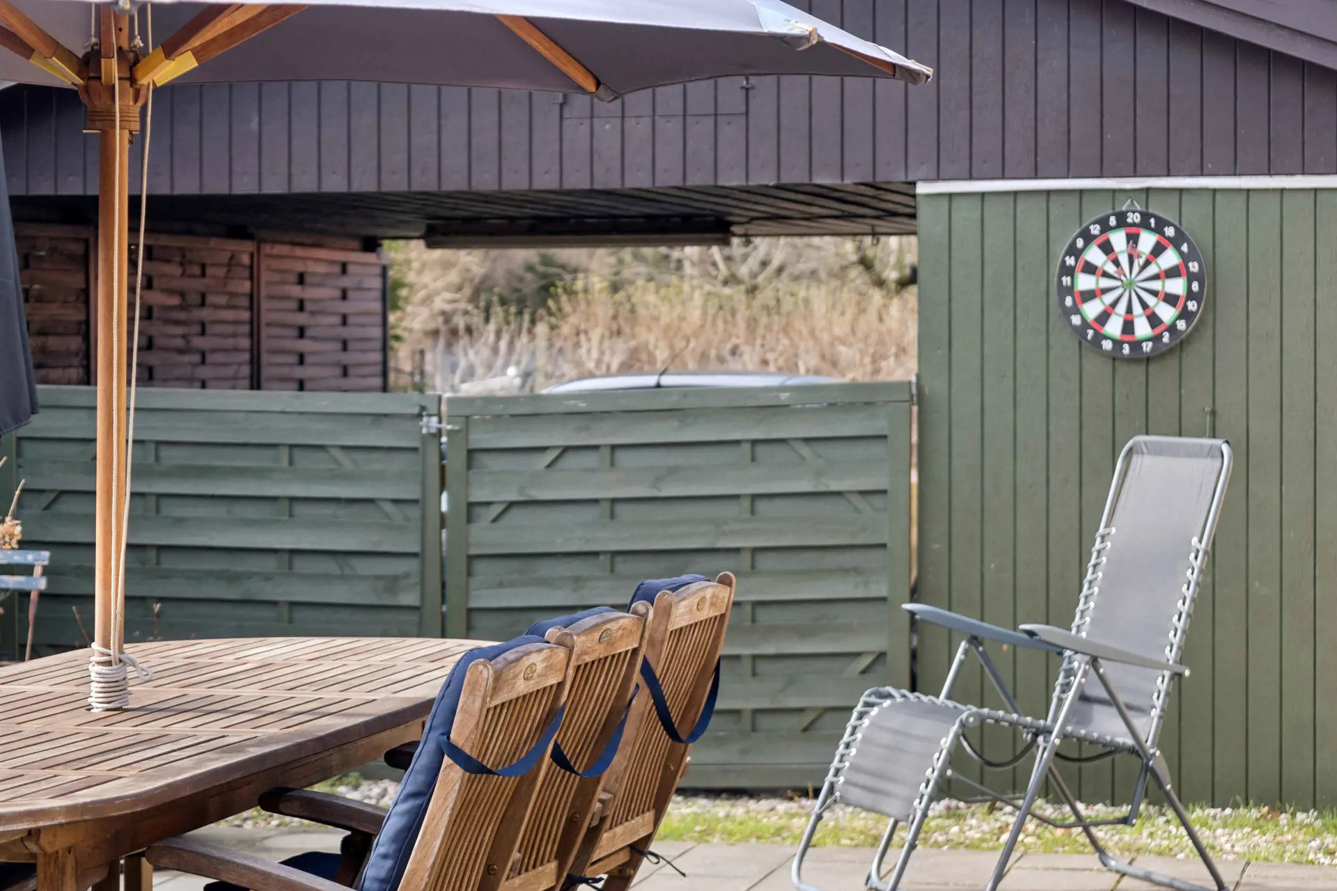 Draußen erwartet Sie eine große Rasenfläche mit Platz für Ballspiele und zum Toben. Es gibt einen Sandkasten, ein Trampolin, Tischtennis im Freien und Dart. Auf zwei Terrassen mit Gartenmöbeln können Sie entspannen und am Abend den Grill anwerfen und draußen essen.