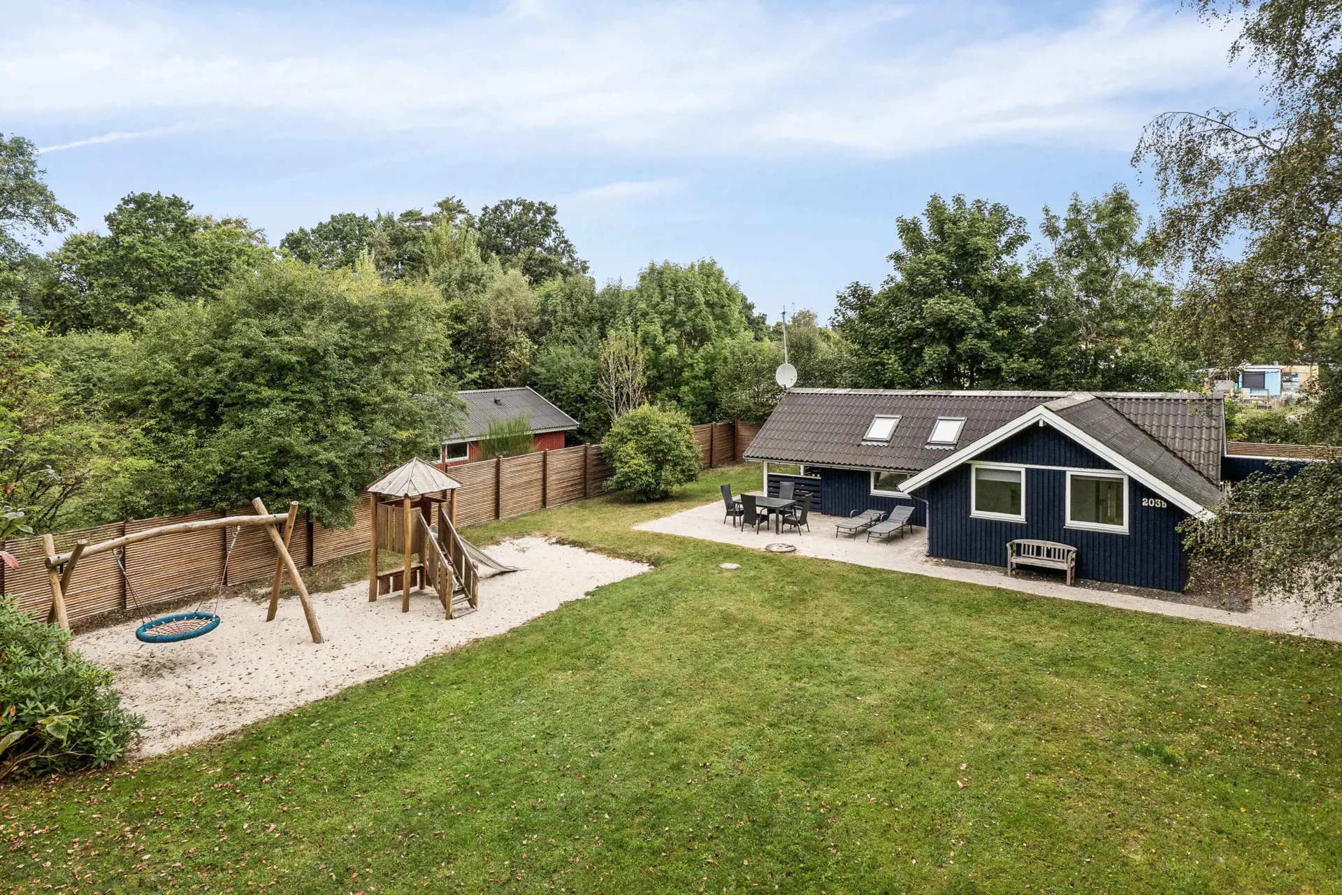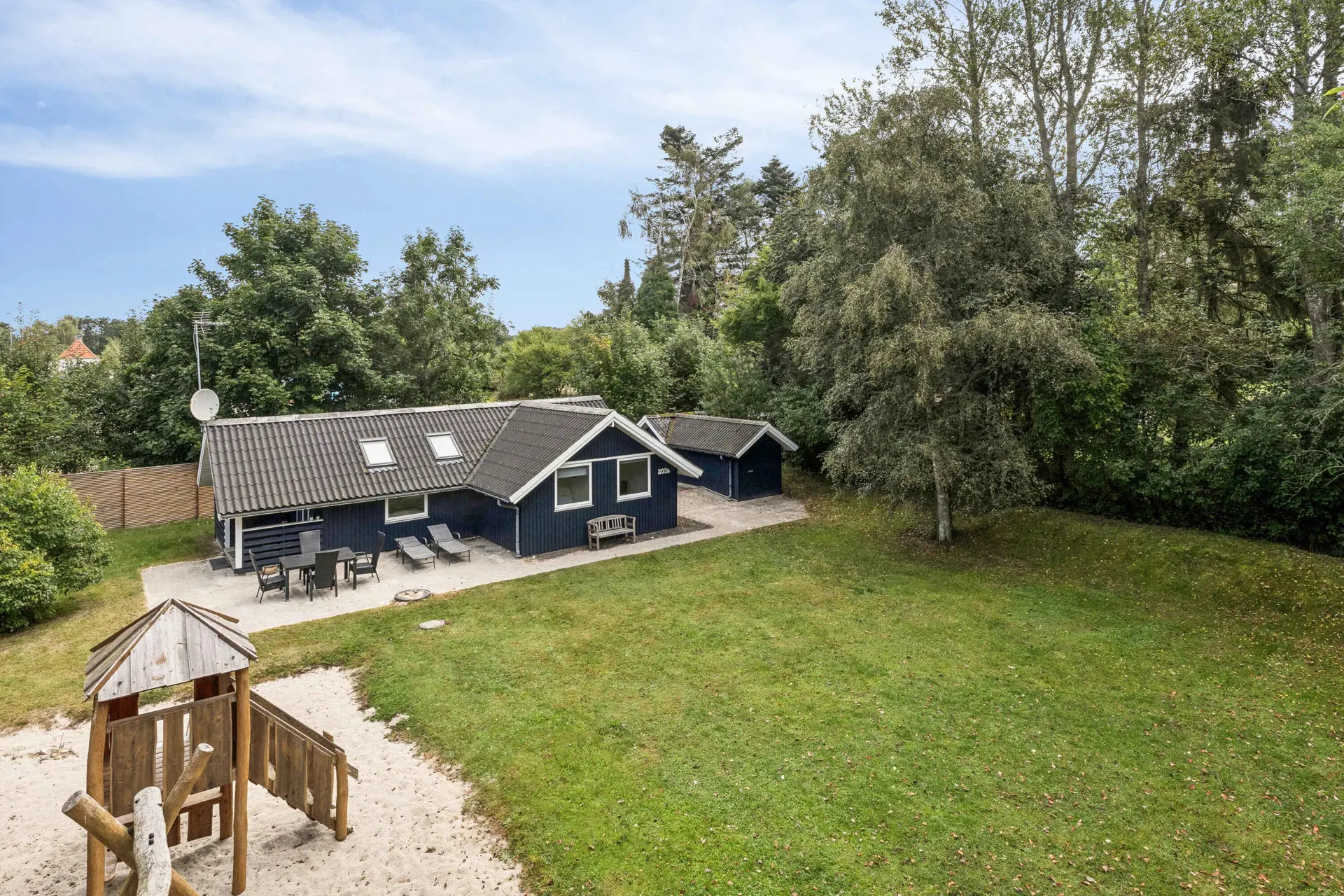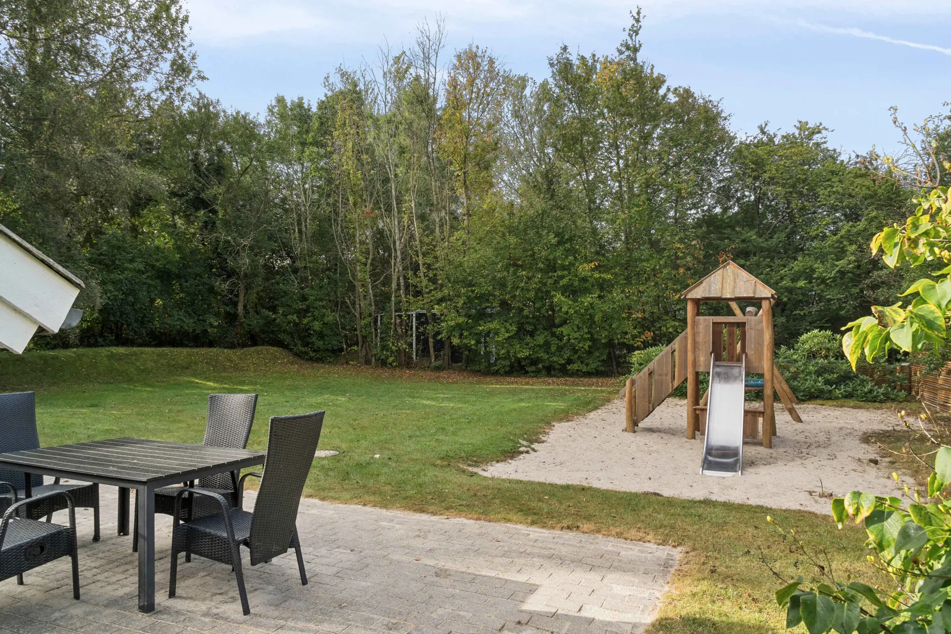 Im Garten gibt es gute Spielmöglichkeiten mit großer Schaukel und Spielturm für Kinder. In der Umgebung gibt es mehrere Restaurants, Streetfood, Minigolf und Einkaufsmöglichkeiten im Brugsen – alles in kurzer Entfernung. Außerdem liegt ein Wald in der Nähe, ideal für Spaziergänge und Naturerlebnisse.
