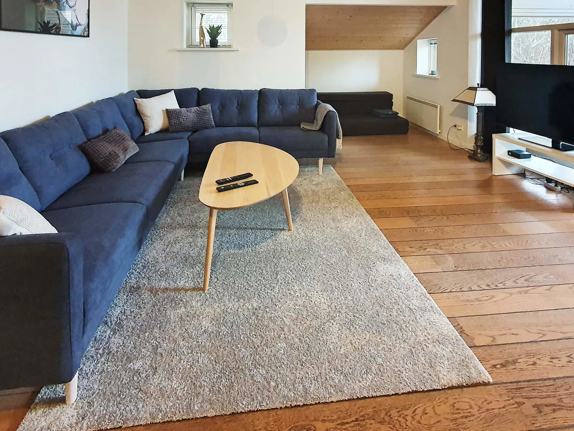 Offener Küchen-/Wohnbereich für das Familienleben, ausgestattet mit u.a. Geschirrspüler und WLAN. Im TV stehen auch einige deutsche Sender zur Auswahl. Vom Wohnbereich aus haben Sie Zugang zu einer 16 m2 großen, überdachten Terrassenfläche mit Gartenmöbeln und Grill. Auf dem Naturgrundstück mit Platz für Ballspiele stehen für die Kinder auch ein Sandkasten und zudem eine Feuerstelle für ein Lagerfeuer bereit.