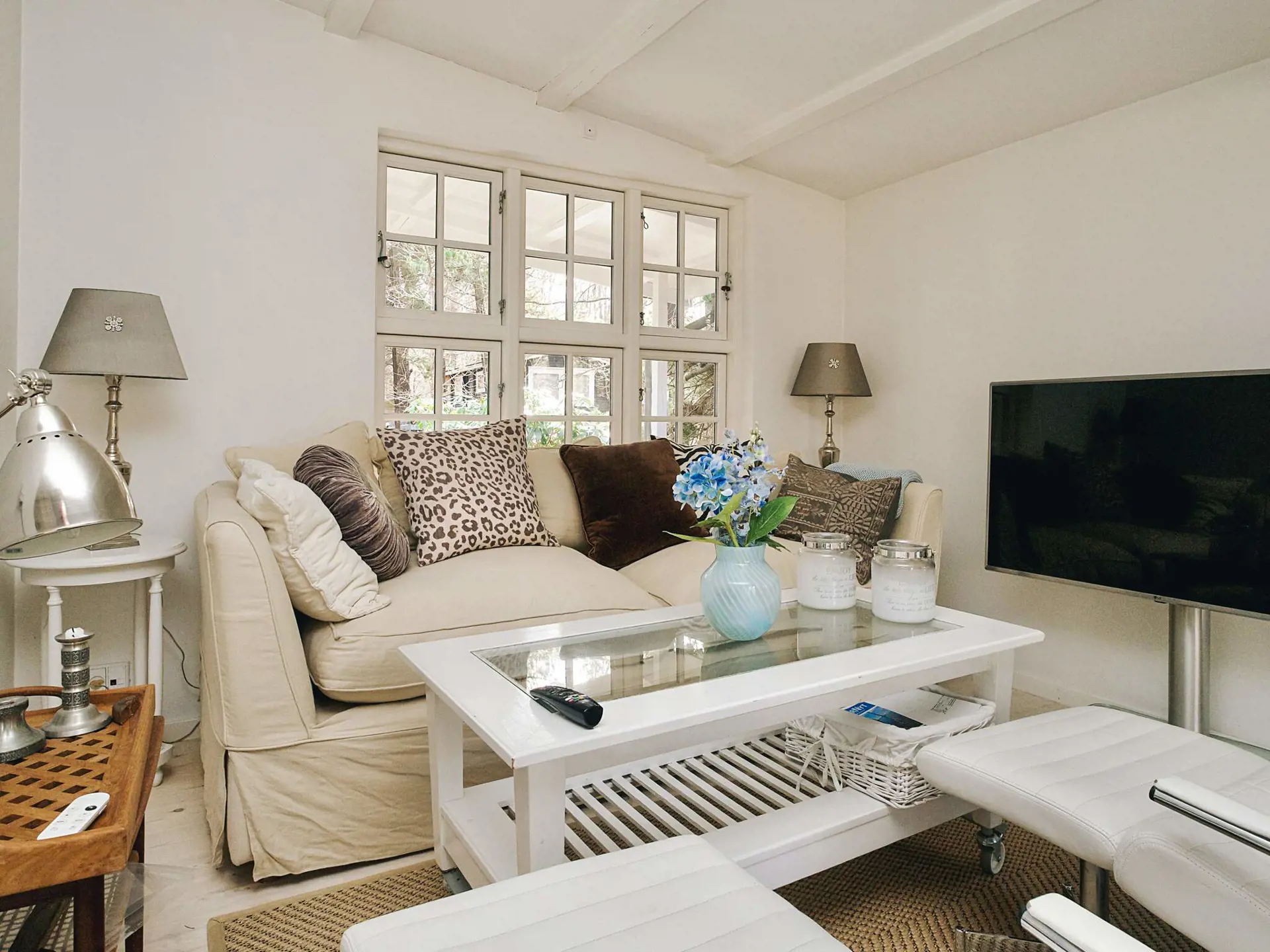 Das Wohnzimmer ist mit bequemen Sofas und einem Fernseher ausgestattet, auf den Sie Ihre Lieblingssender via Chromecast streamen können.