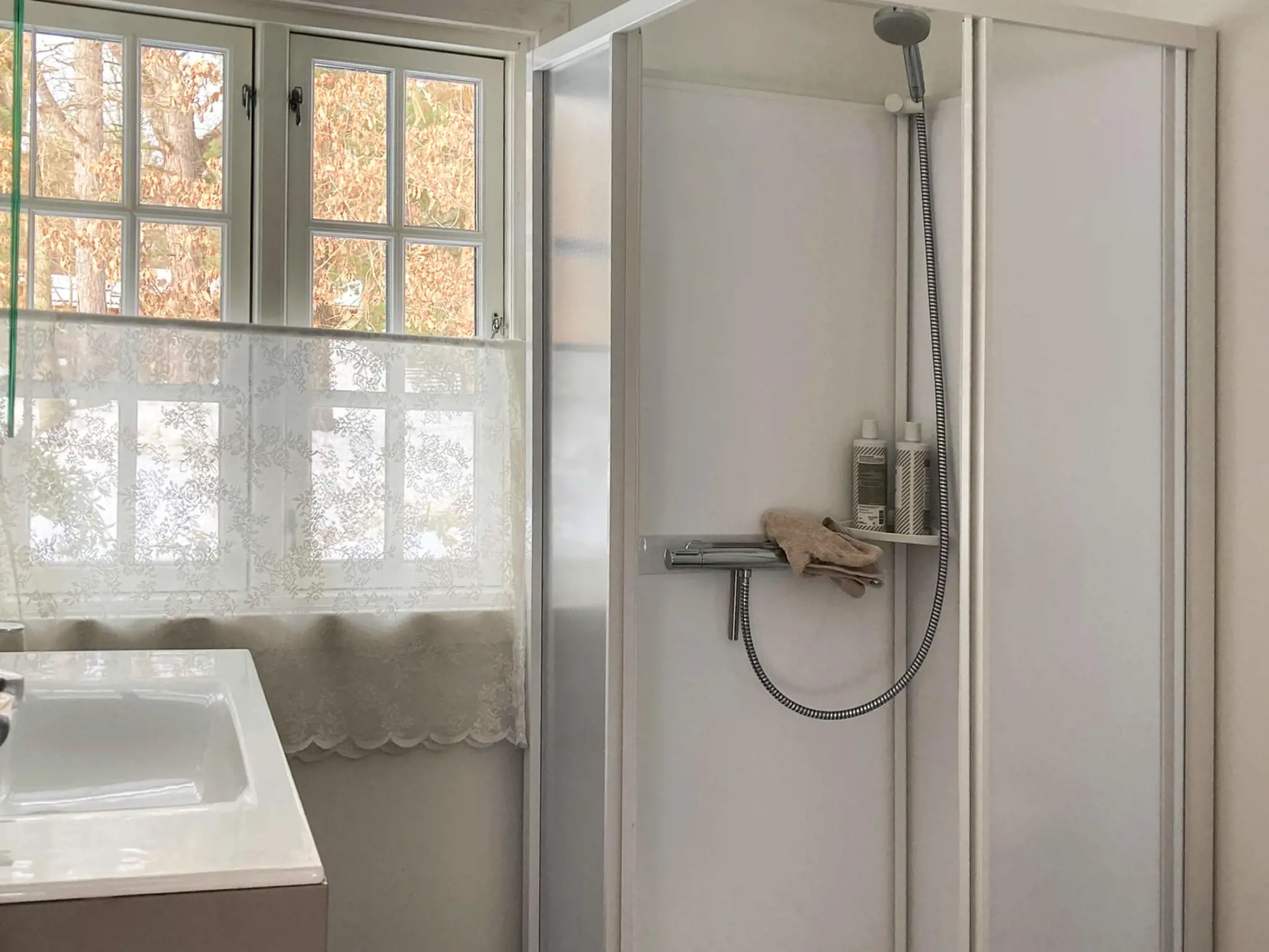 Draußen erwartet Sie eine schöne, nach Südwesten ausgerichtete Terrasse mit Grill und Gartenmöbeln sowie eine Außendusche mit Warm- und Kaltwasser.