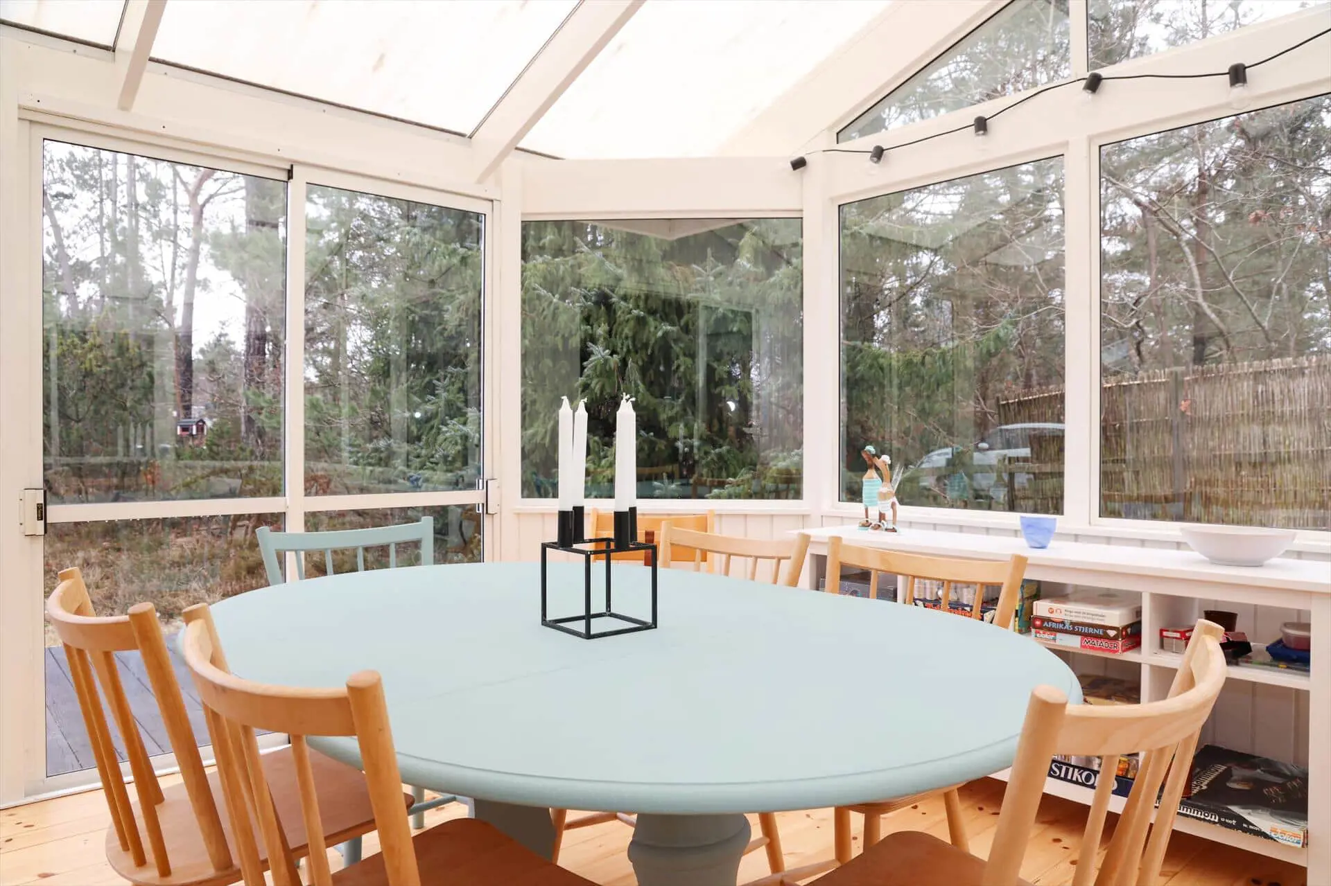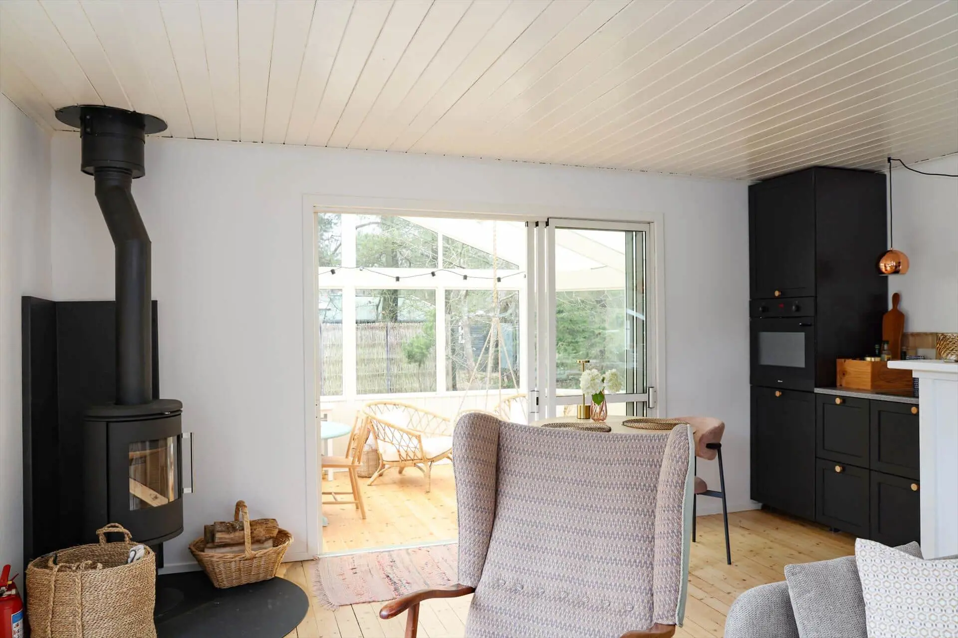 Das Wohnzimmer des Hauses geht in den wunderschönen Wintergarten über, in dem du dich zusammensetzen, plaudern oder ein gemütliches Brettspiel spielen kannst. Angrenzend an den Wohnbereich befindet sich eine schöne offene Küche, in der du ein leckeres Abendessen zubereiten kannst, während es sich die anderen Familienmitglieder auf dem Sofa gemütlich machen.