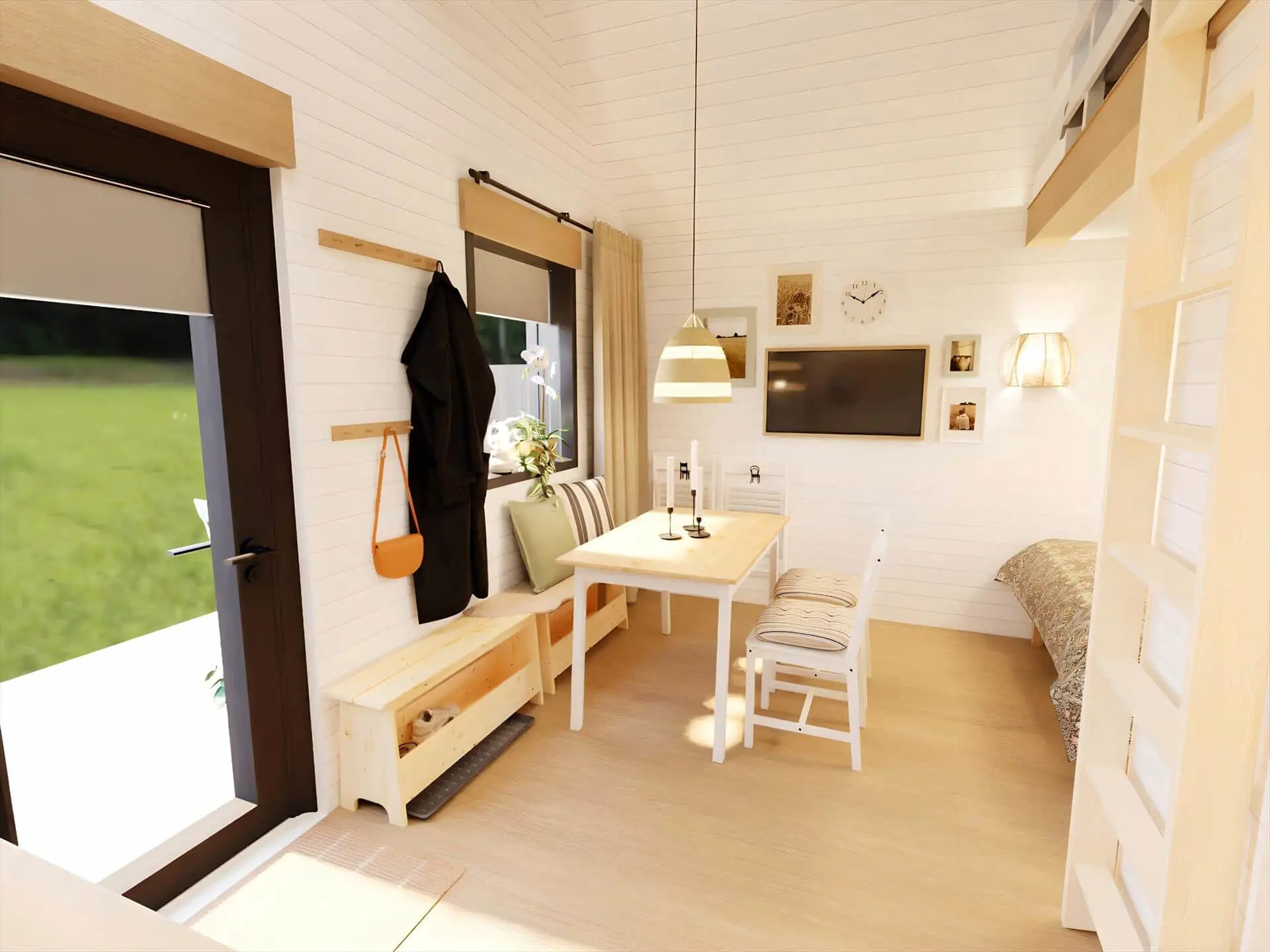 Sobald du die Hütte betrittst, wirst du dich sofort willkommen fühlen – alles ist hell, neu, hochwertig und äußerst einladend. Du wirst schnell entspannen und merken, dass dein Urlaub begonnen hat. Im schönen Wohnbereich, der offen mit der Küche verbunden ist, könnt ihr euch am Esstisch zu einem Brettspiel oder einem leckeren Mittagessen versammeln. Wenn ihr als Gruppe reist, stehen euch insgesamt fünf Hütten zur Verfügung.