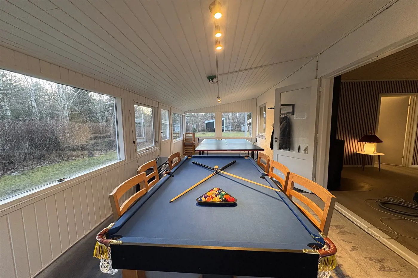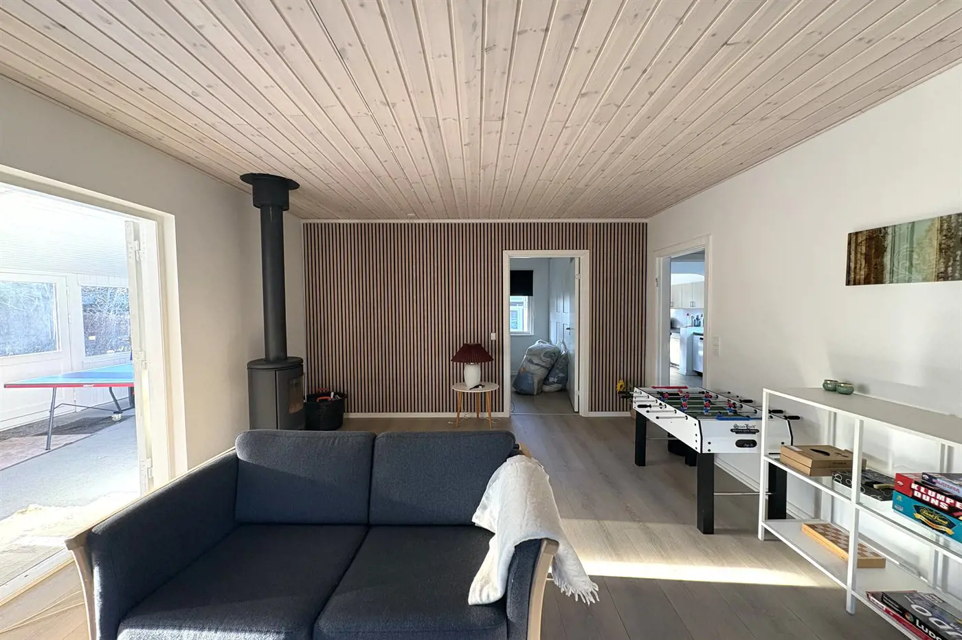 Das Ferienhaus verfügt über einen großen Aktivitätsraum, in dem Kinder und Erwachsene sich mit Spielen und Aktivitäten vergnügen können – ideal für sowohl Regentage als auch für gemütliche Abende. Das Haus ist funktional eingerichtet, mit besonderem Wert auf das gemütliche Beisammensein und entspannte Stunden.