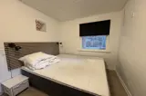 Die Schlafplätze verteilen sich auf 2 Schlafräume. 2 Schlafplätze in einem Doppelbett. 3 Schlafplätze in Etagenbetten. Ferner steht ein Kinderbett zur Verfügung.