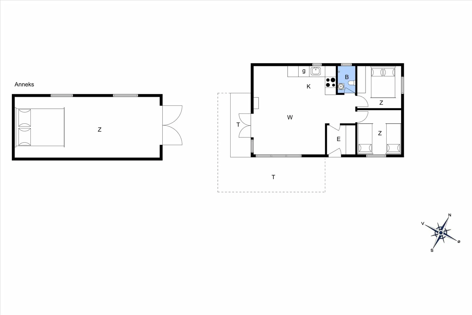 Das Ferienhaus begrüßt Sie mit zwei guten Schlafzimmern, von denen eines mit einem Doppelbett und das andere mit zwei Einzelbetten samt ausreichend Schrankfläche ausgestattet ist. Im Wohnraum sorgt ein Fernseher mit Chromecast dafür, das Sie selbst im Urlaub Ihre Lieblingsserien streamen können. Die Küche fügt sich praktischerweise offen in den Wohnraum ein. Vom Wohnraum aus genießen Sie direkten Zugang zur gemütlichen, überdachten Terrasse, auf der Sie wunderbar grillen und es sich entspannt auf den Gartenmöbeln gemütlich machen können. Während Sie sich auf der Terrasse in vollen Zügen erholen und entspannen, beobachten Sie Ihre Kinder, die vergnügt im großen Garten und im gemütlichen Spielhaus spielen oder auf das Fußballtor schießen. Das Annex enthällt ein Dobbeltbett und TV.