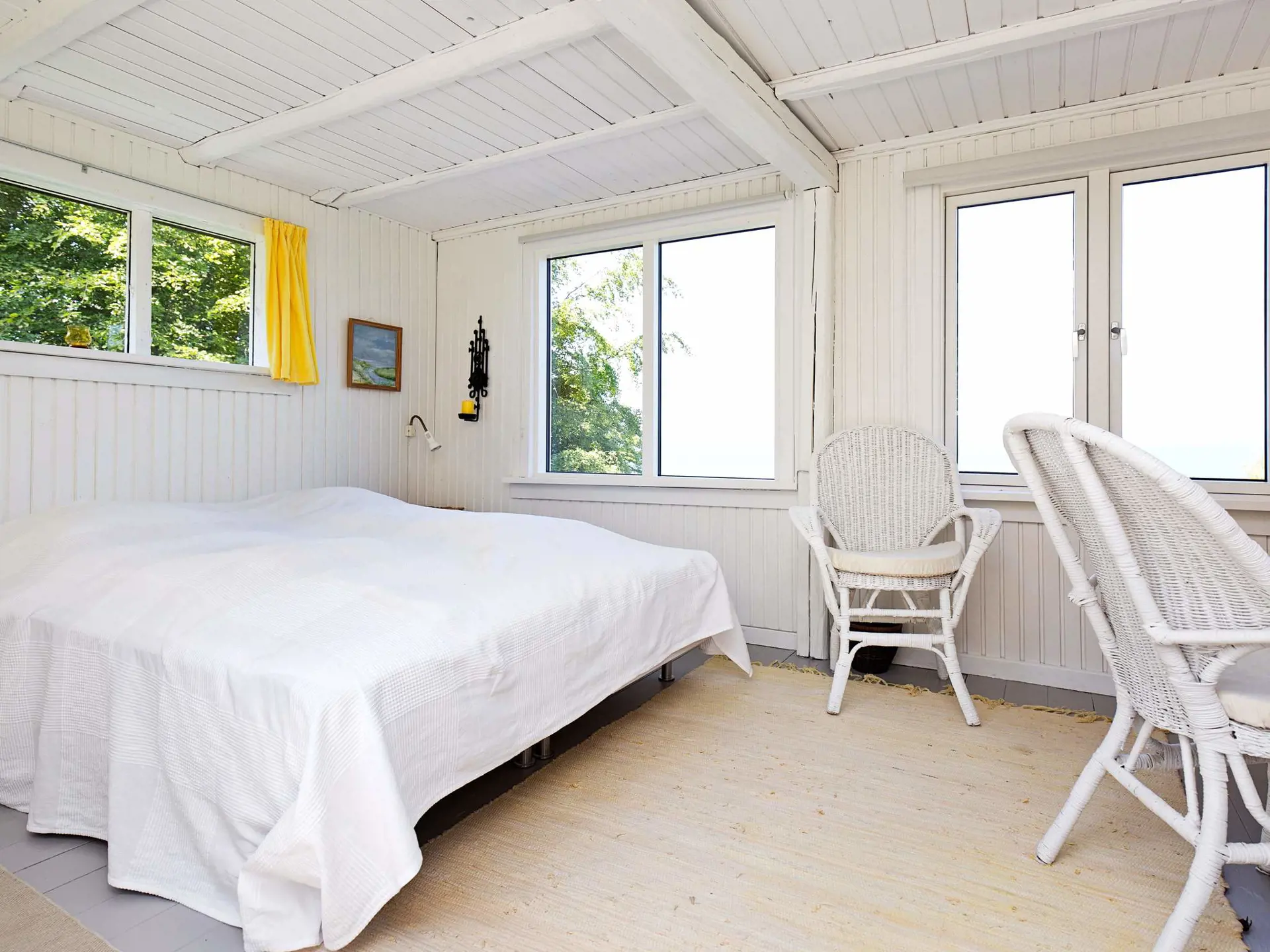Dieses gemütliche Ferienhaus liegt auf einem ruhigen, 500 m² großen Naturgrundstück und bietet einen gemütlichen und ruhigen Rückzugsort mit herrlichem Blick auf das Wasser. Das Haus verfügt über ein 25 m² großes Wohnzimmer mit Holzofen, Radio, Fernseher und einem Zustellbett für mehr Flexibilität. Es gibt zwei Schlafzimmer mit Doppelbetten, eines davon im ersten Stock, der über eine steile Treppe erreichbar ist. Bitte beachten Sie: Die niedrige Decke im Haus trägt zum traditionellen Landhauscharakter bei. Die Küche wurde 2011 renoviert und verfügt über einen Elektroherd, einen Kühlschrank mit Gefrierfach, eine Mikrowelle und eine Kaffeemaschine.