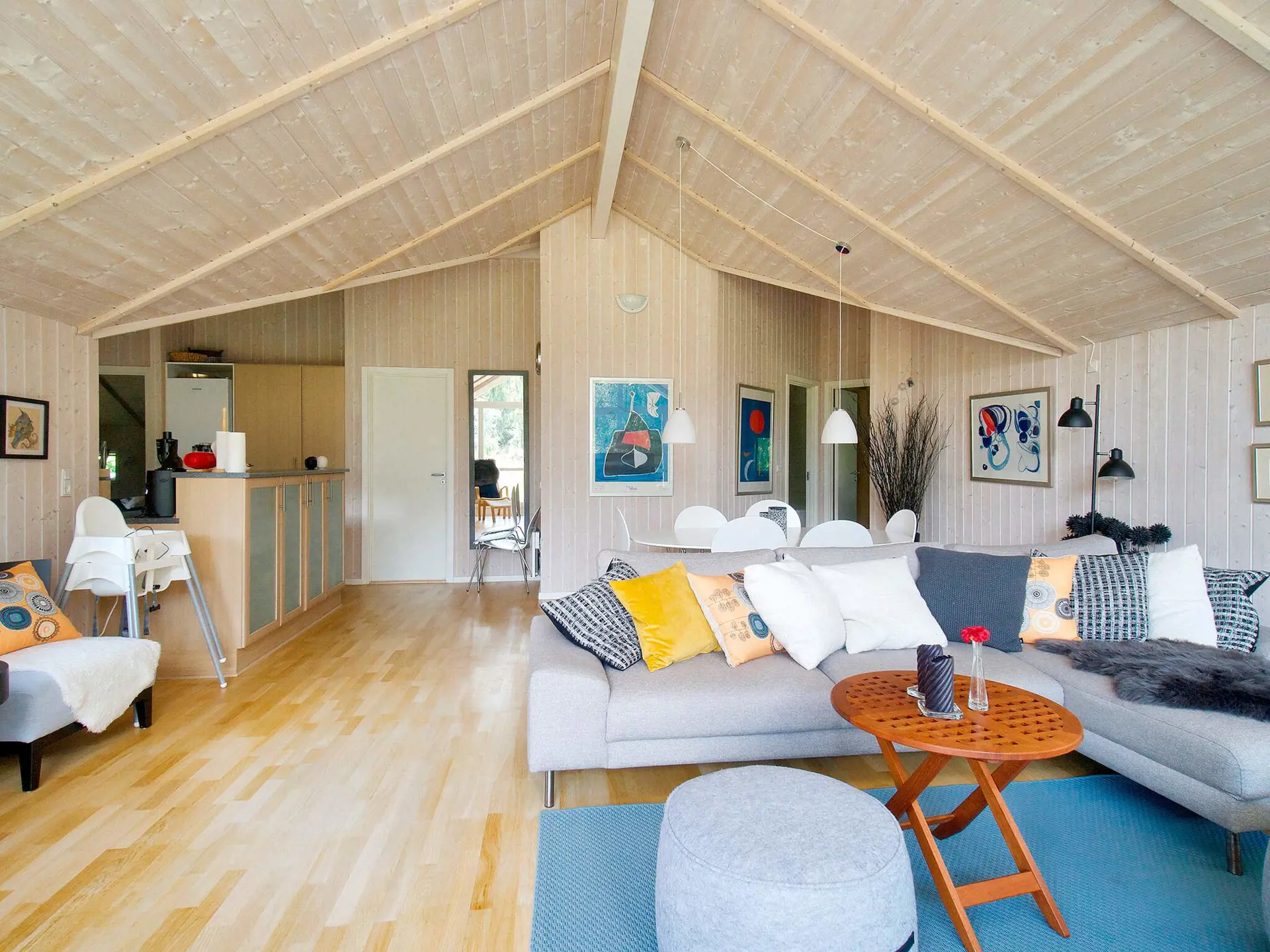 Ferienhaus mit Sauna, gelegen mitten in der herrlichen Gegend von Veddinge Bakker. Die 126 m2 große, sehr gepflegte Wohnfläche besteht u.a. aus einem großen, offenen Küchen-/Wohnbereich mit hoher Decke und Panoramafenstern mit herrlichem Blick in den Garten. In jedem der vier Schlafzimmer steht ein großes Doppelbett bereit. In drei der Zimmer können die Betten getrennt werden, sodass sie zu Einzelbetten werden. In zwei der Zimmer gibt es zudem einen Fernseher. Großes Badezimmer mit Eckwanne, Dusche, Fußbodenheizung sowie Waschmaschine und Trockner. Auch eine schöne Sauna ist vorhanden. Gemütliches Wohnzimmer und direkter Zugang zur überdachten Terrasse, wo Sie den Grill anzünden und die Stille genießen können. Kurzer Weg zu einem schönen kinderfreundlichen Strand.