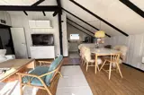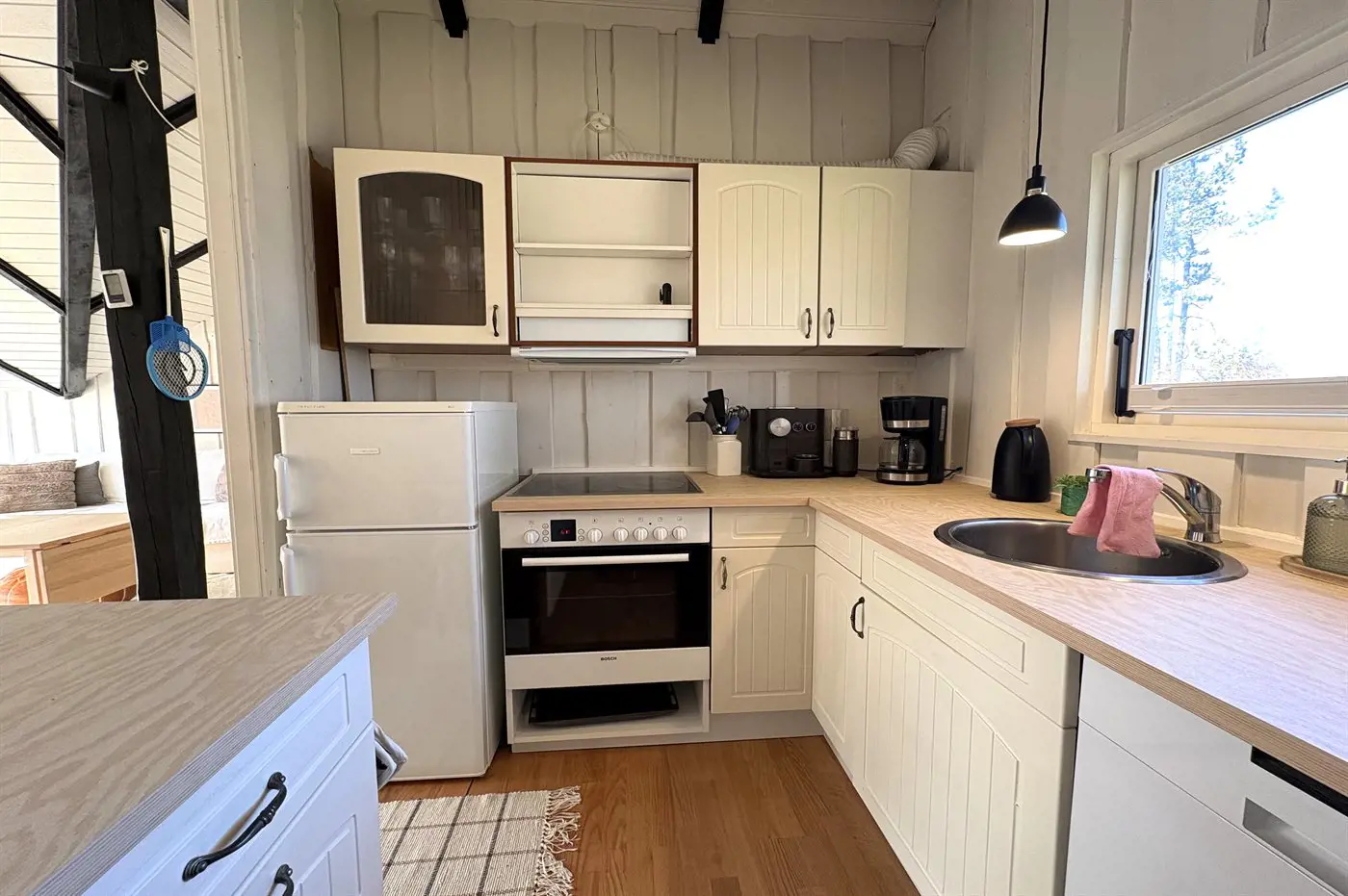 Das Ferienhaus verfügt über eine gemütliche Wohnküche, und von hier aus hast du Zugang zu einer schönen Holzterrasse, die teilweise überdacht ist. Es gibt zwei Schlafzimmer mit jeweils zwei Schlafplätzen. Das Badezimmer ist mit einer Duschnische ausgestattet, und dir stehen eine Waschmaschine sowie ein Trockner (Kombigerät) zur Verfügung.