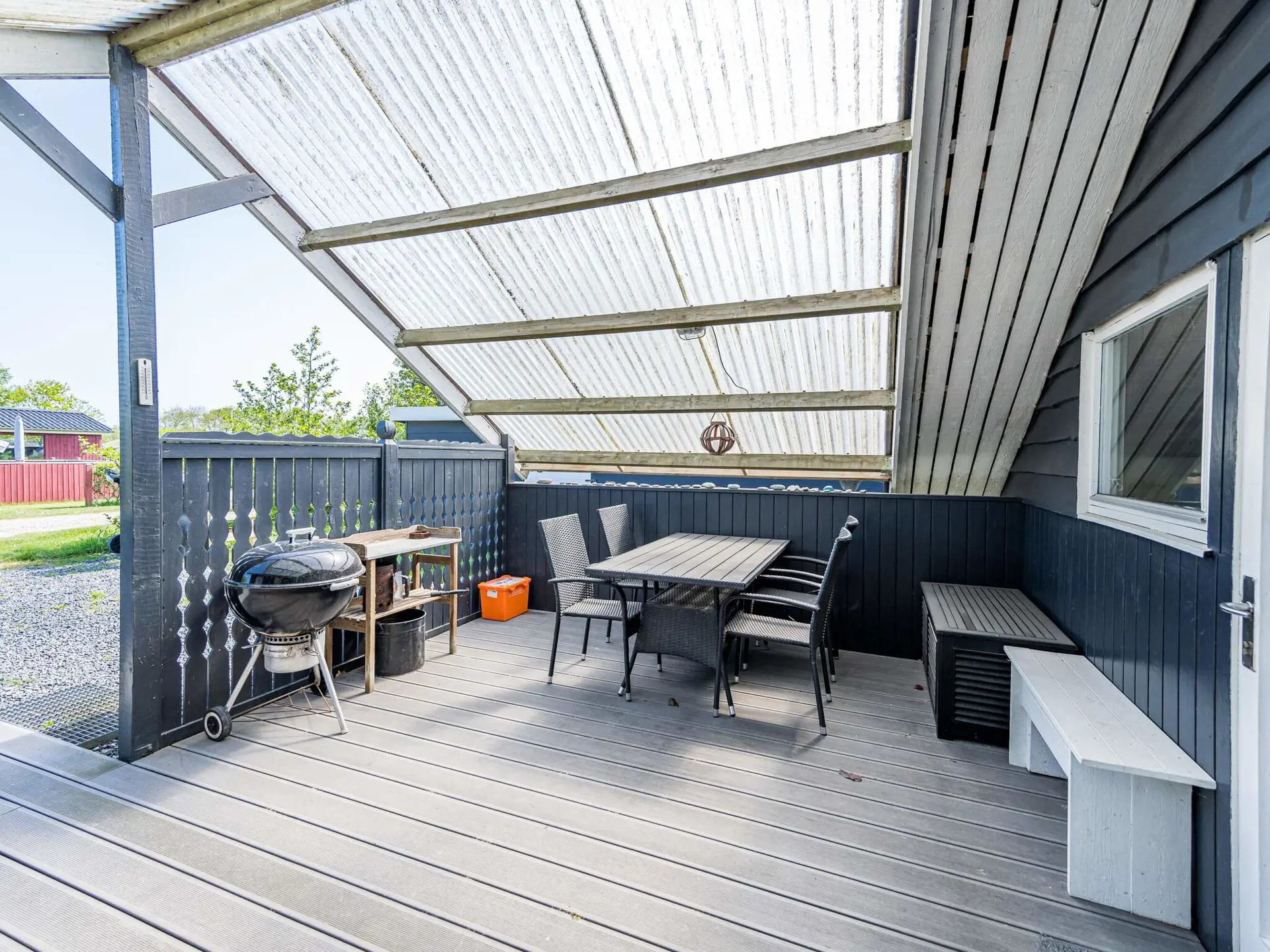 Gemütliches Ferienhaus mit schöner Lage in Bork Havn. Im Inneren finden Sie ein Wohnzimmer in offener Verbindung mit der Küche und dem Essbereich. Dort steht auch ein gemütlicher Holzofen bereit. Darüber hinaus gibt es eine klimafreundliche Wärmepumpe im Haus.
