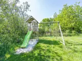 Am Eingang des Ferienhauses befindet sich eine schöne überdachte Holzterrasse mit Gartenmöbeln und Grill, auf der Sie im Sommer auch abends sitzen können. Spielgerüst für die Kinder auf dem Grundstück.