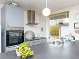 Den Mittelpunkt für das Familienleben bildet der offen kombinierte Küchen-/Wohnbereich mit Ess- und Sitzplatz. Von hier aus haben Sie Zugang zur windgeschützten, gefliesten Terrasse des Hauses. Davor können die Kinder sich auf der Rasenfläche mit Schaukel, Sandkasten und Rusche beschäftigen.