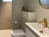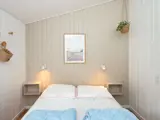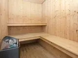Im Haus offener Küchen-/Wohnbereich für das Familienleben, mit großer Fensterpartie für viel Tageslicht. Es gibt drei Schlafzimmer im Haus; zwei mit Doppelbett, das dritte mit einem Doppelbett sowie einem Etagenbett mit zwei Kojen. Darüber hinaus Duschbad mit Whirlpool und Sauna sowie Gäste-WC vorhanden.