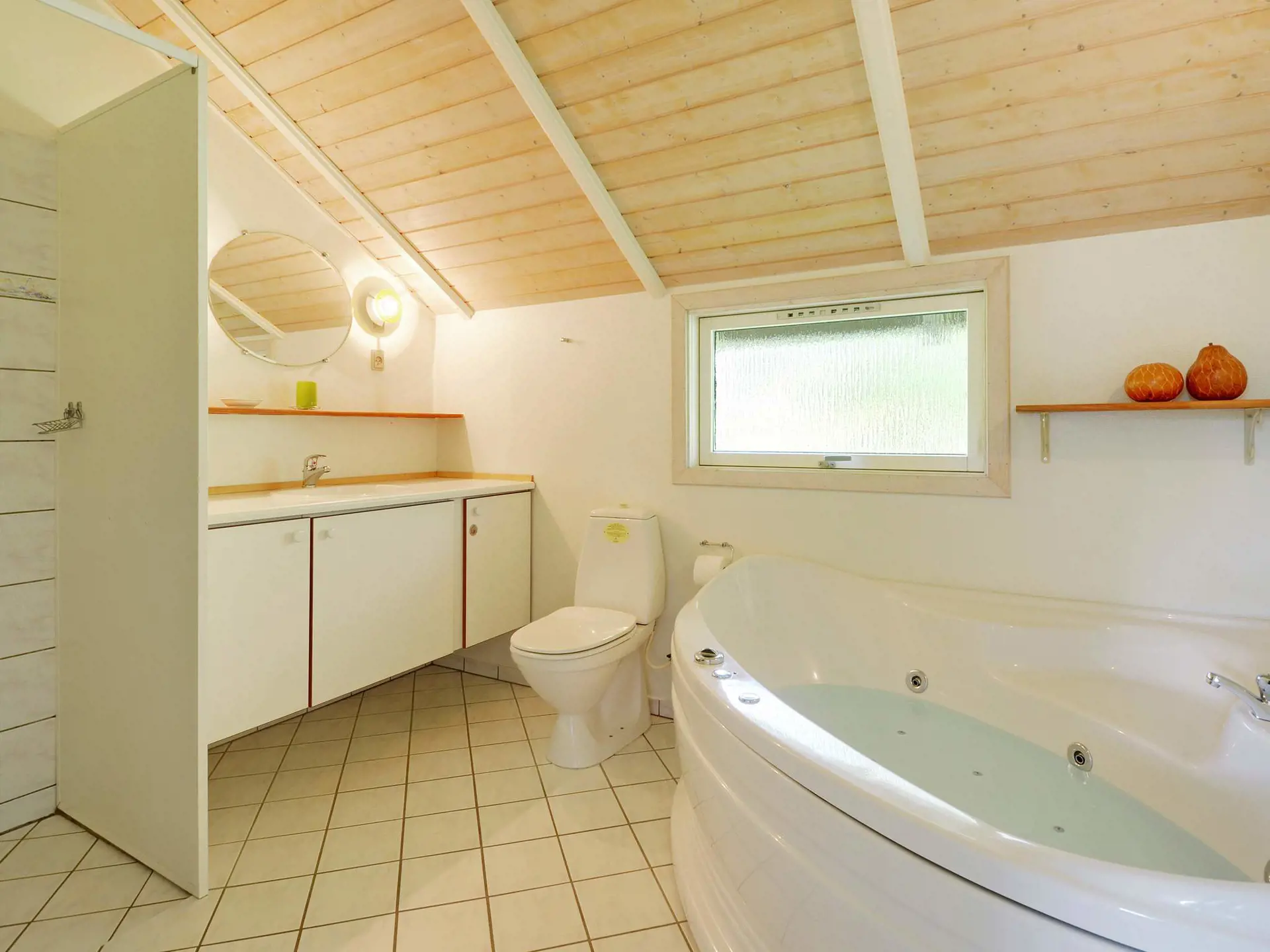 Dieses Ferienhaus liegt zentral in Bork Havn in der Nähe vom Wasser und unweit von Einkaufsmöglichkeiten, Restaurants, dem Hafen und der Fußgängerzone. Das Haus ist ansprechend mit modernen Möbeln eingerichtet. Nach einem langen Tag draußen können Sie sich herrlich in dem Whirlpool oder der Sauna entspannen oder auch gemütliche Stunden vor dem Holzofen verbringen. Kinder freuen sich über eine Schaukel, einen Sandkasten und eine große Rasenfläche. Großer Carport vorhanden.