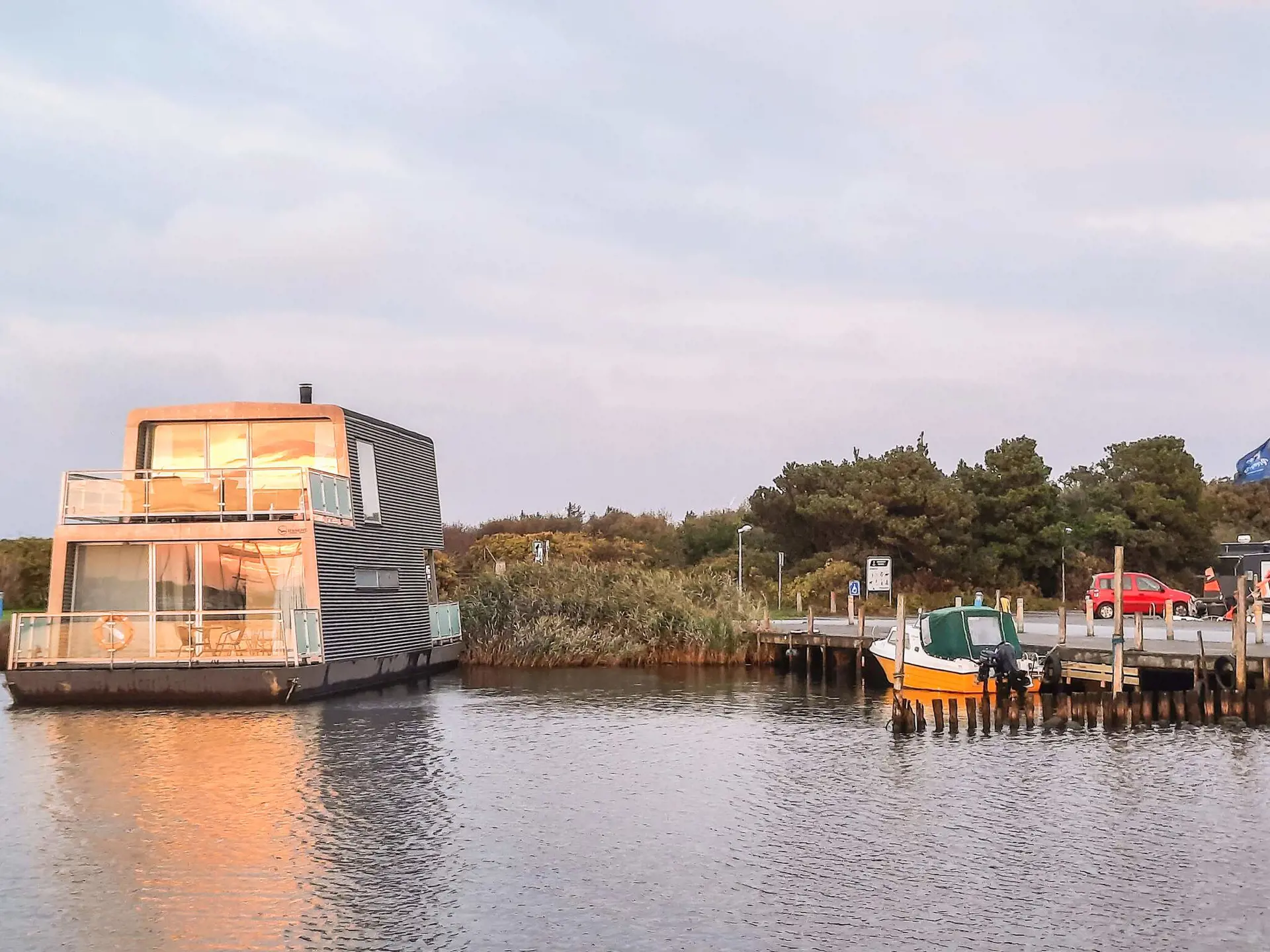 Erleben Sie das Hausboot Amalie – Maritimer Luxus im Hafen von Bork Einzigartiges Hausboot auf 2 Etagen im alten Fischerdorf Bork Havn am südlichen Ende des Ringkøbing Fjords. Das Hausboot Amalie wurde 2007 nach modernsten Entwürfen gebaut und ist mit 3 Flachbildschirmen, Radio und Glasfasernetz ausgestattet und auf dem Parkplatz des Hafens befinden sich 4 Ladestationen für Elektroautos. Holen Sie sich ein fantastisches maritimes Erlebnis für die ganze Familie, - auch wenn Sie keine seemännischen Fähigkeiten haben! Das Hausboot ist so groß und stabil, das Sie lediglich ein schwaches und angenehmes Schwanken spüren und mitunter ein dezentes Knarzen wahrnehmen können. Stellen Sie sich vor, Sie könnten den Verkehr der Segelboote, von einer der 3 Terrassen des Bootes aus beobachten: Die Fischer,die nach einem langen Tag auf dem Fjord nach Hause in den Hafen kommen… und von einer anderen Terrasse aus, wie der Fang des Tages entladen wird. Von der Terrasse im 1. Stock blickt man auf das Vogelschutzgebiet Tipperne und hinüber bis zu den Sanddünen an der Nordsee. Es ist ein absolut fantastischer Panoramablick, den man erlebt haben muss - besonders, wenn die Sonne untergeht und den Himmel rot färbt. Wenn das Wetter einmal nicht zum Verweilen auf der Terrasse einlädt, bietet sich trotzdem ein herrlicher Blick auf den gesamten Innenhafen mit seinen Fischerbooten. Die Amalie ist der nächste Nachbar der Fischerboote, die vom mit einem großen Panoramafenster beobachtet werden können. Auf dem Unterdeck gelangt man über eine große überdachte Ostterrasse in ein komfortabel ausgestattetes Esszimmer mit offener Küche. Dann passieren Sie einen kurzen Flur, in dem Sie auf der einen Seite Zugang zu einem Badezimmer mit WC, Dusche und Sauna und auf der anderen Seite zu einem Badezimmer mit WC und Spa haben. Sie kommen zum Hauptschlafzimmer des Schiffes, wo Sie sich hinlegen und dann das Licht im Wasser nur wenige Meter von Ihrem Kissen entfernt schimmern sehen können. Über eine Treppe gelangt man auf das Oberdeck, wo sich ein atemberaubender Blick auf das Leben, das sich im Hafen und in der Einkaufsstraße auf der gegenüberliegenden Seite des Hafens entfaltet, oder die vielen Windsurfer auf der Förde, bietet. Das Wohnzimmer ist mit modernen Ledermöbeln und einem Holzofen für die kühlen Abende ausgestattet. Vom Wohnzimmer aus hat man Zugang zu einer Kabine mit zwei Einzelbetten und einer Kabine mit einem Doppelbett. Beide Kabinen sind mit einem Schließfach ausgestattet. Auf der anderen Seite des dazugehörigen Privatparkplatzes befindet sich ein schöner Strand, der sehr kinderfreundlich ist, da das Wasser sehr flach und ruhig ist. Wer hingegen in der tosenden Nordsee schwimmen möchte, für den sind es bei Nymindegab nur wenige Kilometer bis zum Meer. Wenn Sie Lust haben, mitten in der Urlaubsatmosphäre Sport zu treiben, gibt es ein 38435 Amalie, Molen 1, Bork Havn paar hundert Meter entfernt einen schönen Joggingpfad, der dem Fjord folgt, und entlang des Weges gibt es fünf Pfosten mit 2-3 verschiedenen Trainingsgeräten an jedem Ort. Außerdem gibt es die Möglichkeit, Fahrräder zu mieten. In der 31. Woche findet in Bork Havn ein Musikfestival mit einer Reihe von bekannten und weniger bekannten Künstlern statt, die eine große Anzahl von Besuchern anziehen. Bitte beachten Sie jedoch, dass das Hausboot nicht an Jugendgruppen vermietet wird.