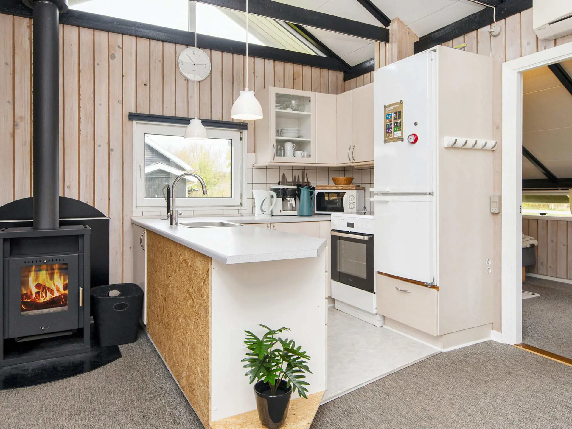 Ferienhaus in Bork Havn, nur etwa 500 m vom Ringkøbing Fjord entfernt. Im gut ausgestatteten Ferienhaus wurde jeder Quadratmeter optimal genutzt. Es gibt einen offenen Küchen-/Wohnbereich für das Familienleben. Im Haus stehen sowohl eine klimafreundliche Wärmepumpe als auch ein gemütlicher Holzofen bereit. Das Ferienhaus wird laufend renoviert, sodass Farben und Dekor sich ändern können.
